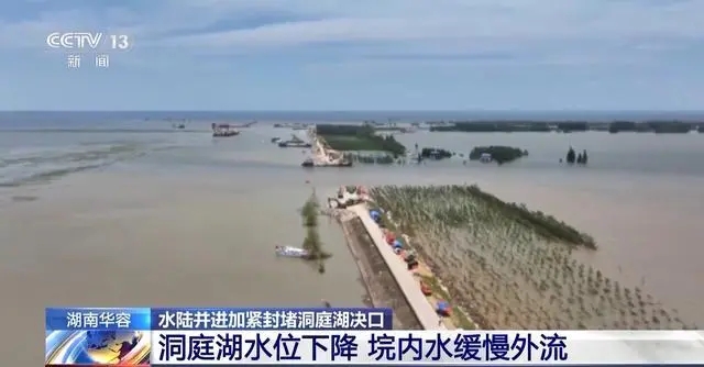 洞庭湖决口封堵已达84米 垸区地势低洼 洪水无法完全自排出