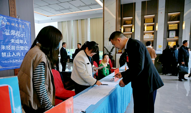 在报到现场,秩序井然。代表们在工作人员的引导下,有条不紊地办理登记手续、领取会议证件与材料。拿到材料后,代表们认真翻阅研读,熟悉会议议程并围绕热点话题展开交流,现场洋溢着履职尽责的热烈氛围。