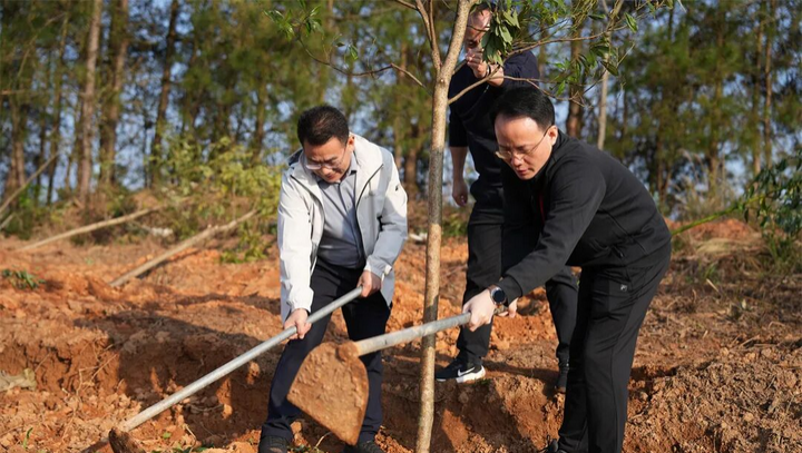 植树现场,郑小胡、向青松等市领导与志愿者、机关干部一起挥锹填土,合力栽下楠木、榉木、香樟、紫薇等苗木。植树间隙,郑小胡向有关负责同志详细了解苗木品种和林木保护等情况,叮嘱要加强苗木管护,提高成活率。他指出,要深入学习贯彻习近平生态文明思想和习近平总书记在湖南考察时的重要讲话和指示精神,牢固树立绿水青山就是金山银山的理念,坚持生态优先、绿色发展,绘就天蓝山绿水清的美丽洪江。