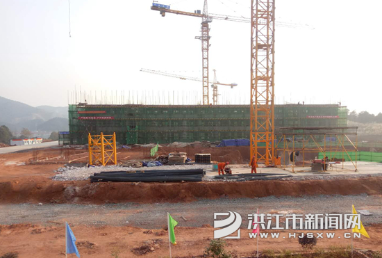 洪江市隆平学校建设工地,工人们在加紧施工。隆平学校是一所试验性小学、初中九年制学校,位于洪江市黔城镇龙标大道,以杂交水稻之父--袁隆平院士在该市安江农校从事教学、科研而命名。学校占地面积105亩,总建筑面积28500平方米,计划2018年底竣工。