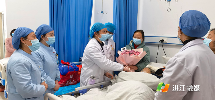 2月23日,洪江市人民医院神经内外科13号病房传来阵阵祝福声:“祝刘奶奶生日快乐!祝刘奶奶健康长寿!”科室主任、医生、护士们正在为一位90岁高龄患者送上鲜花和祝福。欢声笑语、暖意浓浓的祝福声围绕着刘奶奶病床边,刘奶奶虽然无法用过多的言语表达,但她一直笑眯眯地频频点头,回应着这群朝夕相处的白衣天使。