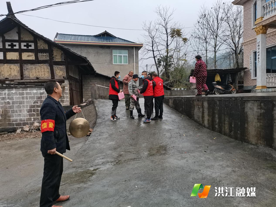 “喂!各位村民注意啦!出门断电熄火戴口罩,回家洗手消毒病菌少,遇到问题莫着急,党员干部来帮您,过年不搞大聚会,电话问候不会怪……”黔城镇泥溪村党总支书记王安友正在敲锣喊话,让村民增强春节防火防疫和自我保护意识。