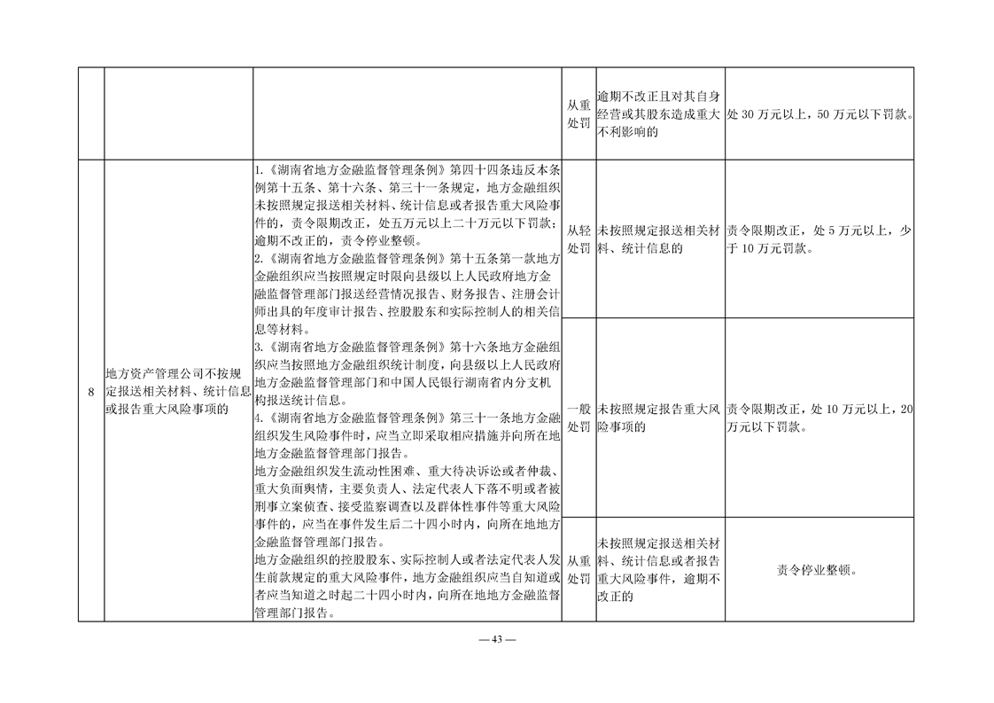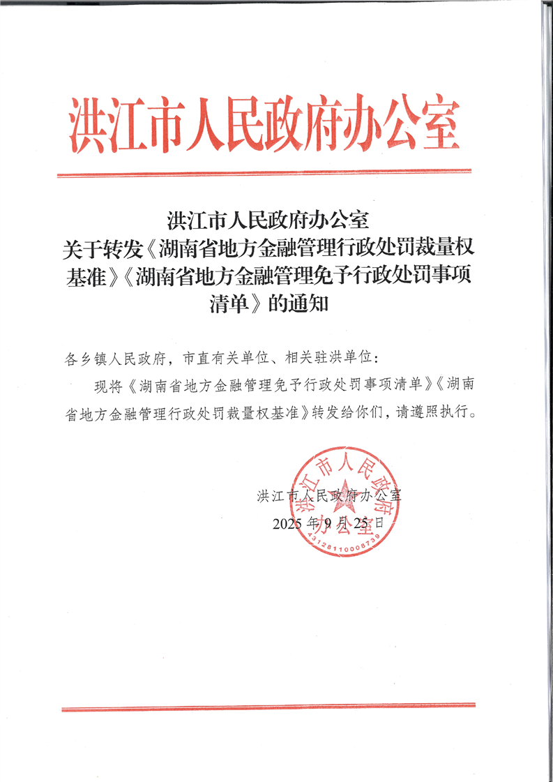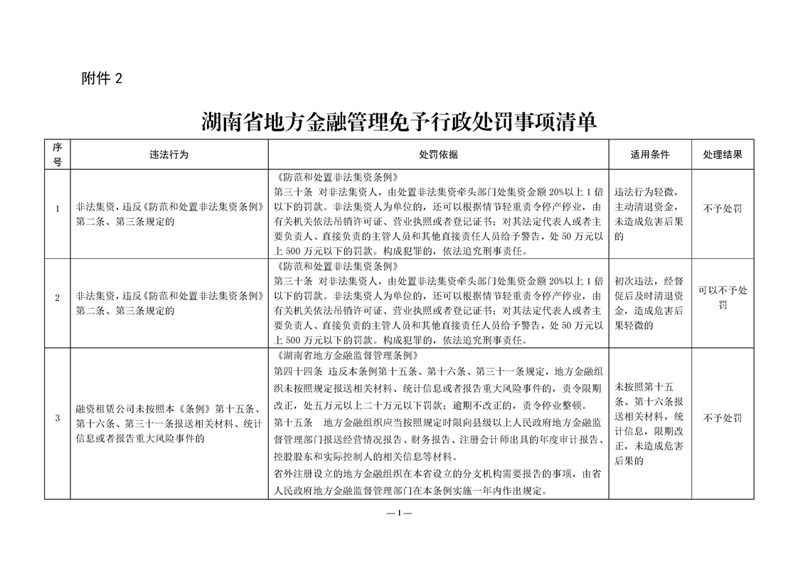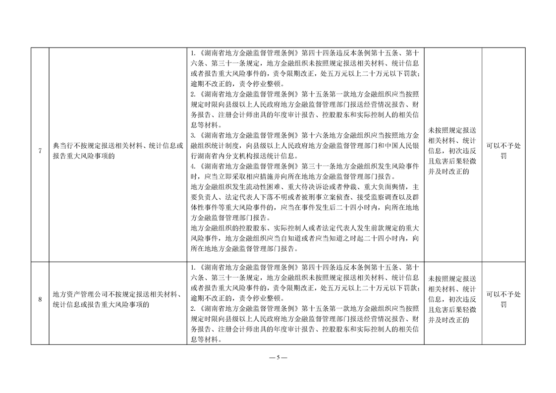 关于转发《湖南省地方金融管理行政处罚裁量权基准》《湖南省地方金融管理免予行政处罚事项清单》的通知