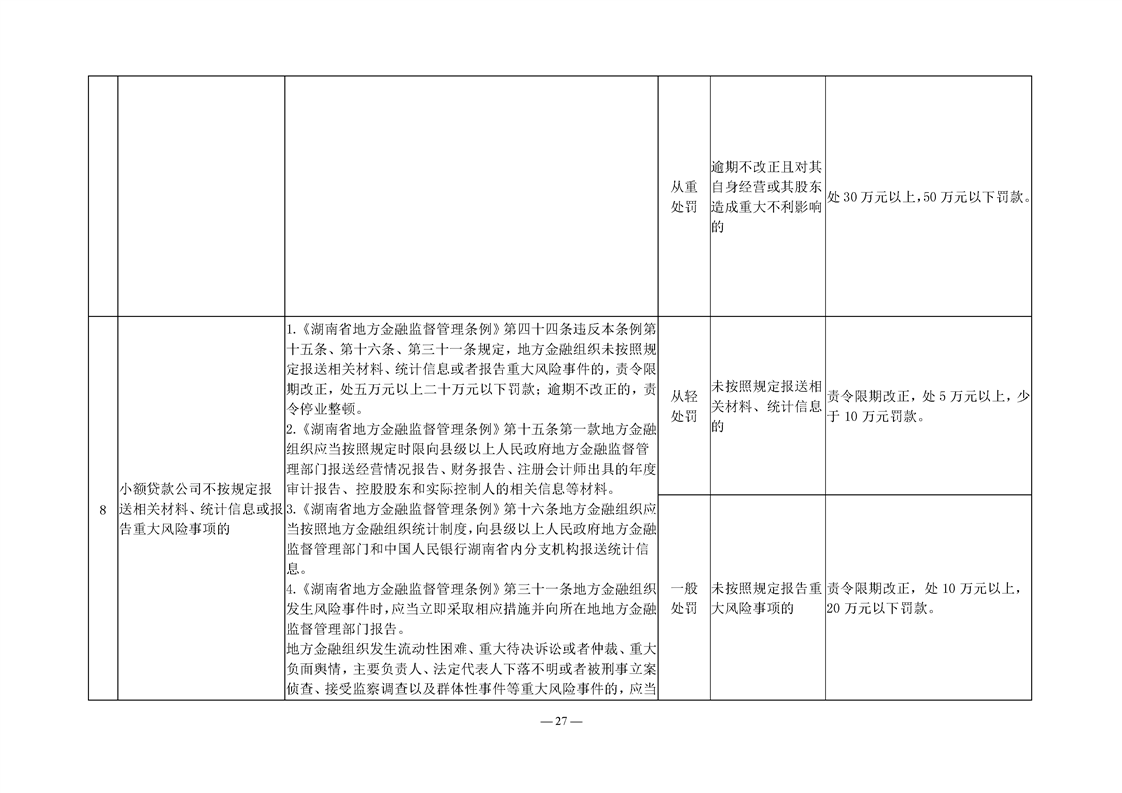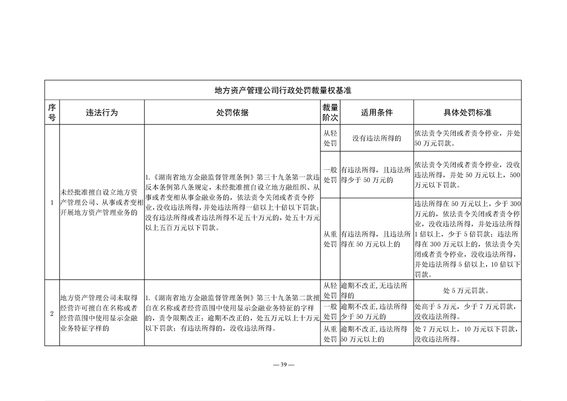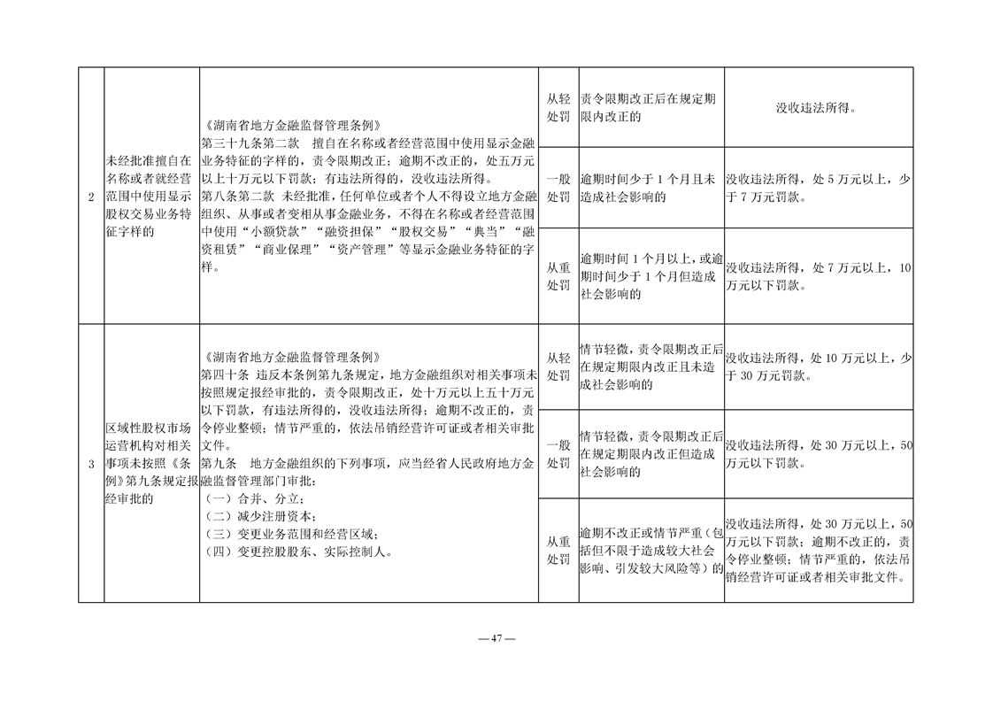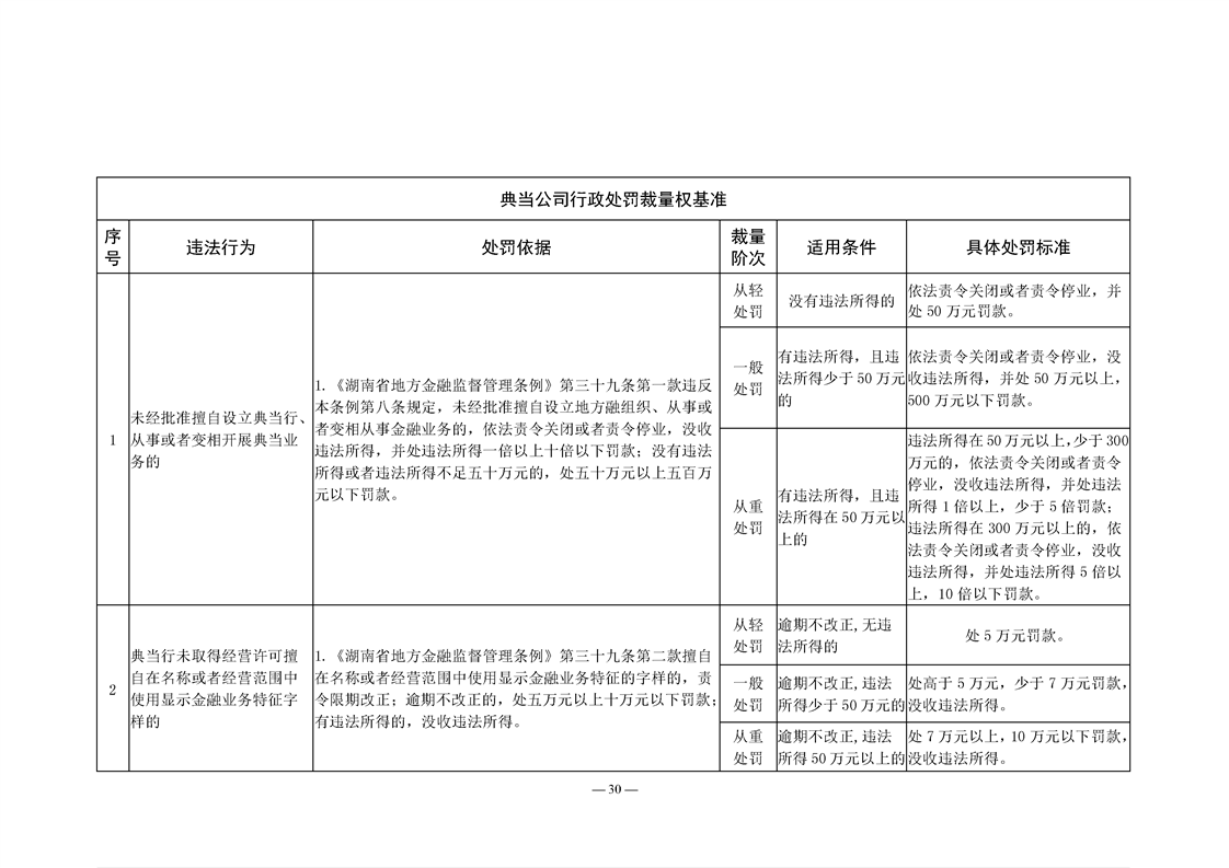 关于转发《湖南省地方金融管理行政处罚裁量权基准》《湖南省地方金融管理免予行政处罚事项清单》的通知