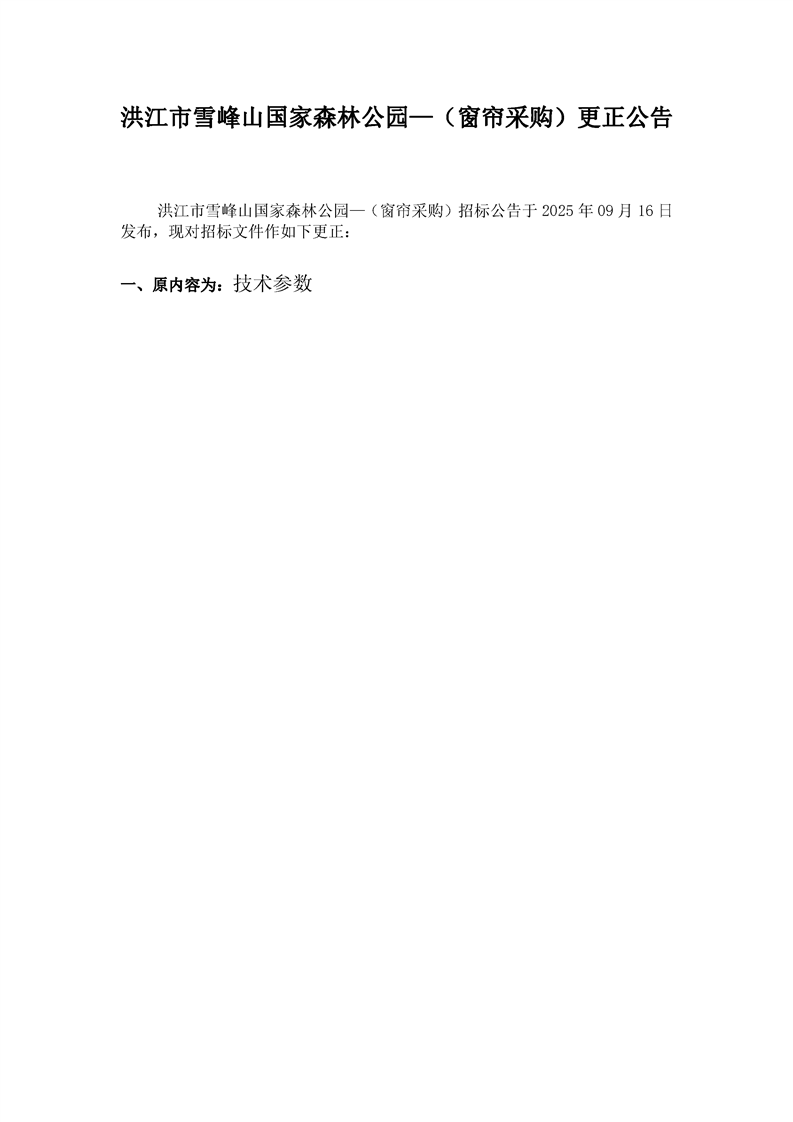 洪江市雪峰山国家森林公园一(窗帘采购)更正公告