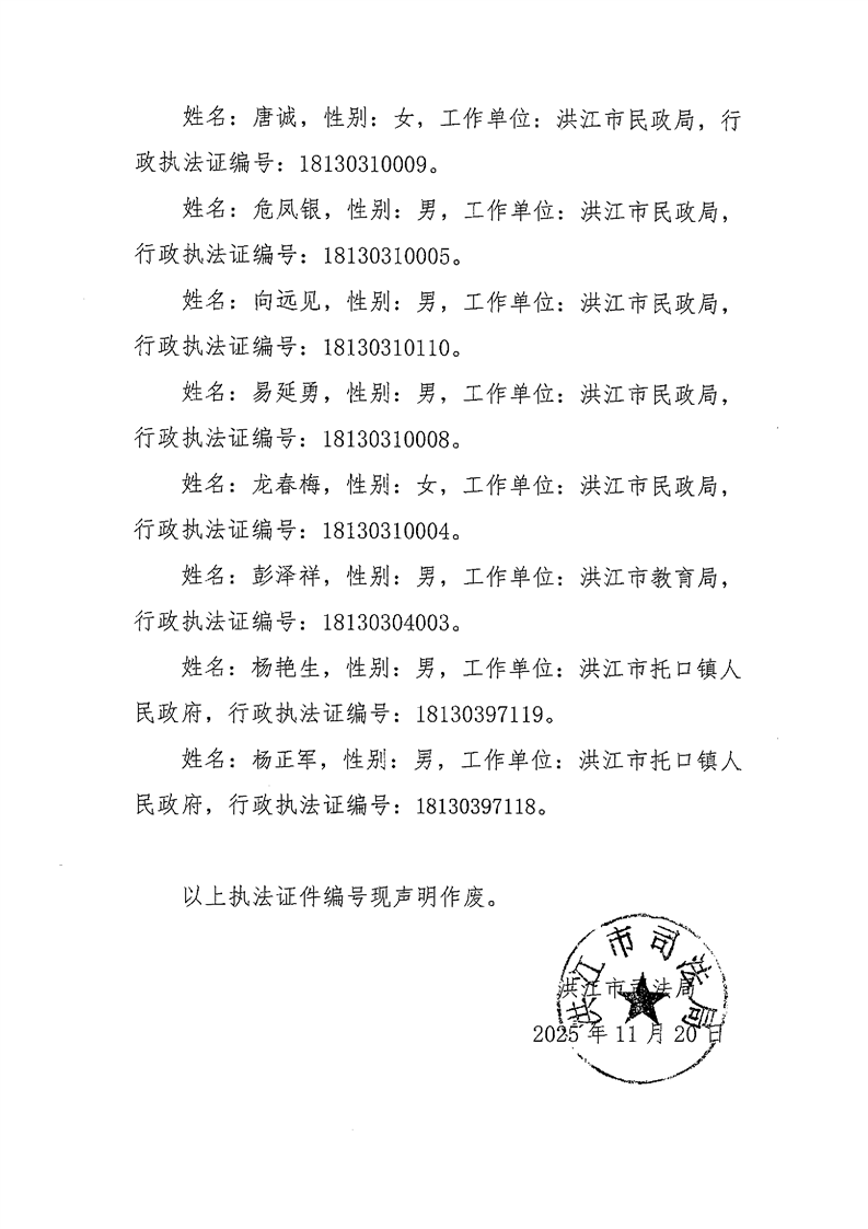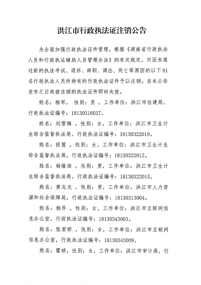 2025年第二批洪江市行政执法证注销公告