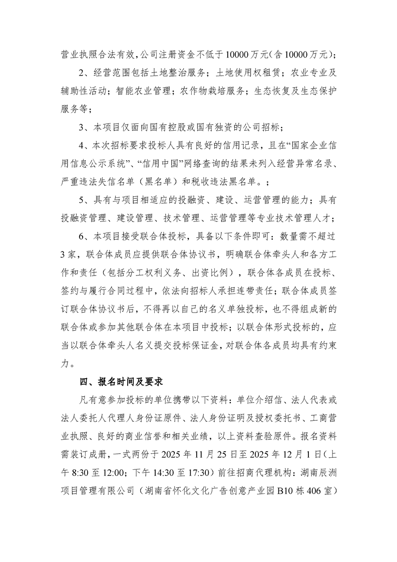 洪江市黔城镇全域土地综合整治项目(一期)实施主体招商公告