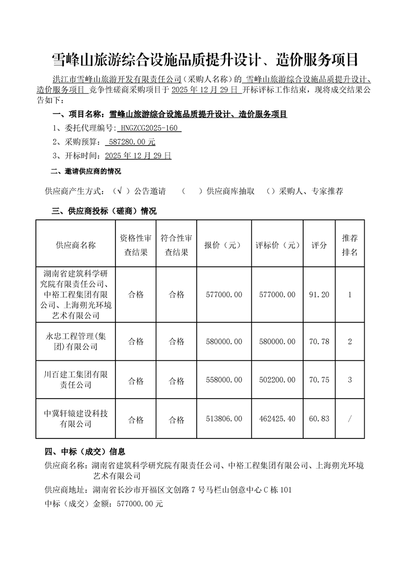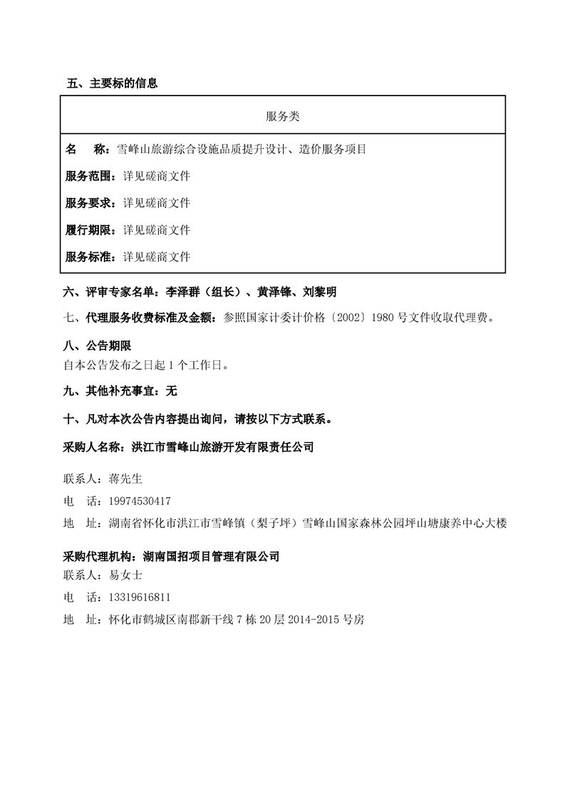雪峰山旅游综合设施品质提升设计、造价服务项目