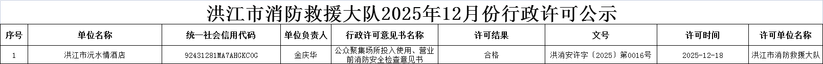 洪江市消防救援大队2025年12月份行政许可公示