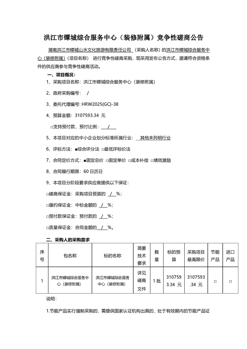 洪江市镡城综合服务中心(装修附属)竞争性磋商公告