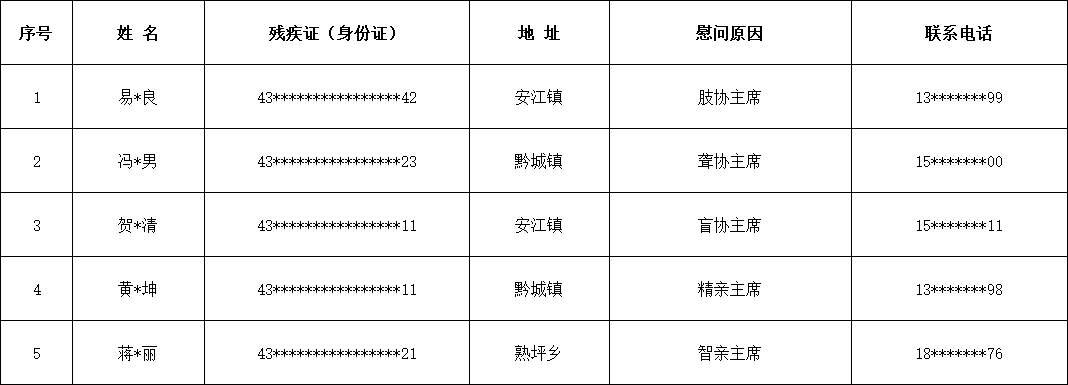 洪江市2026年春节残疾人协会第六届班子成员慰问公示名单