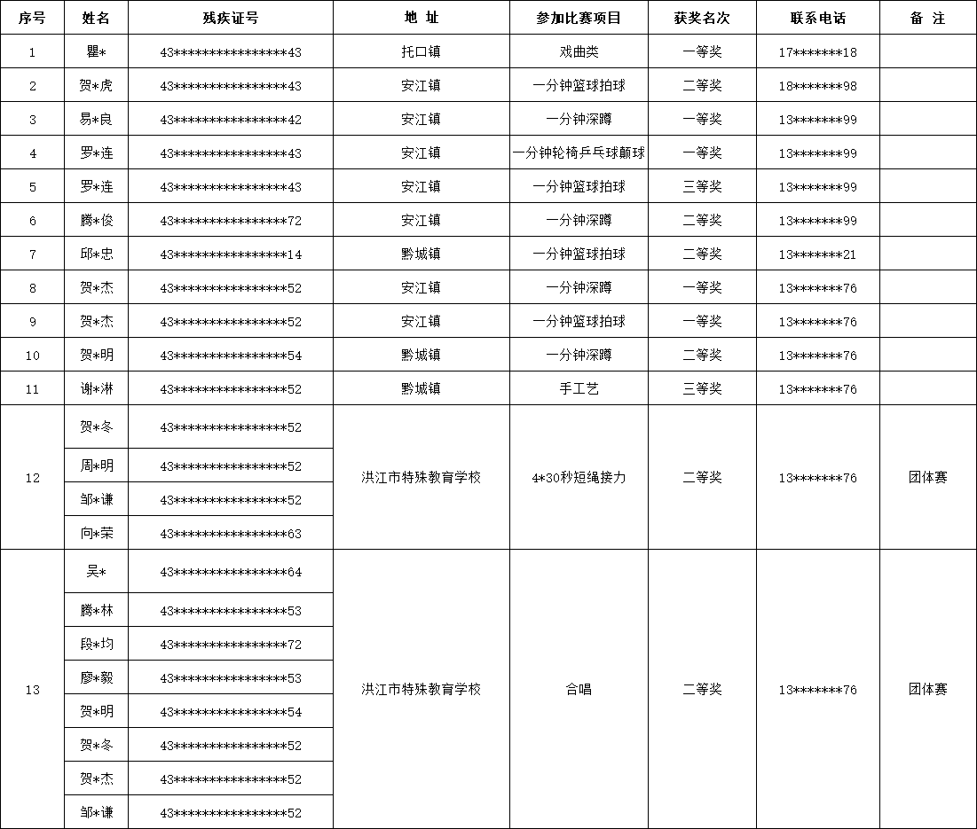 洪江市2025年残疾人参加云运动会比赛获奖奖励公示名单