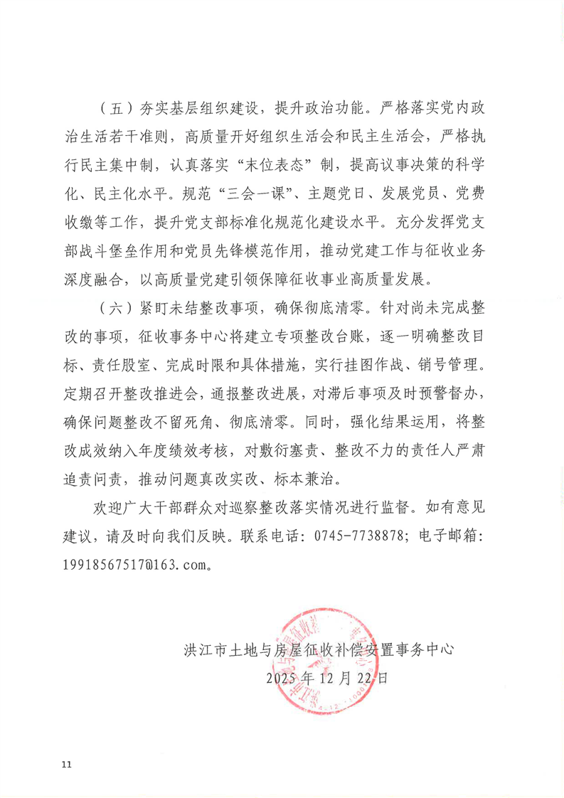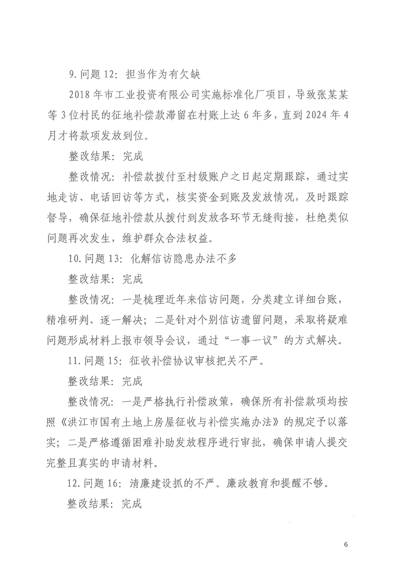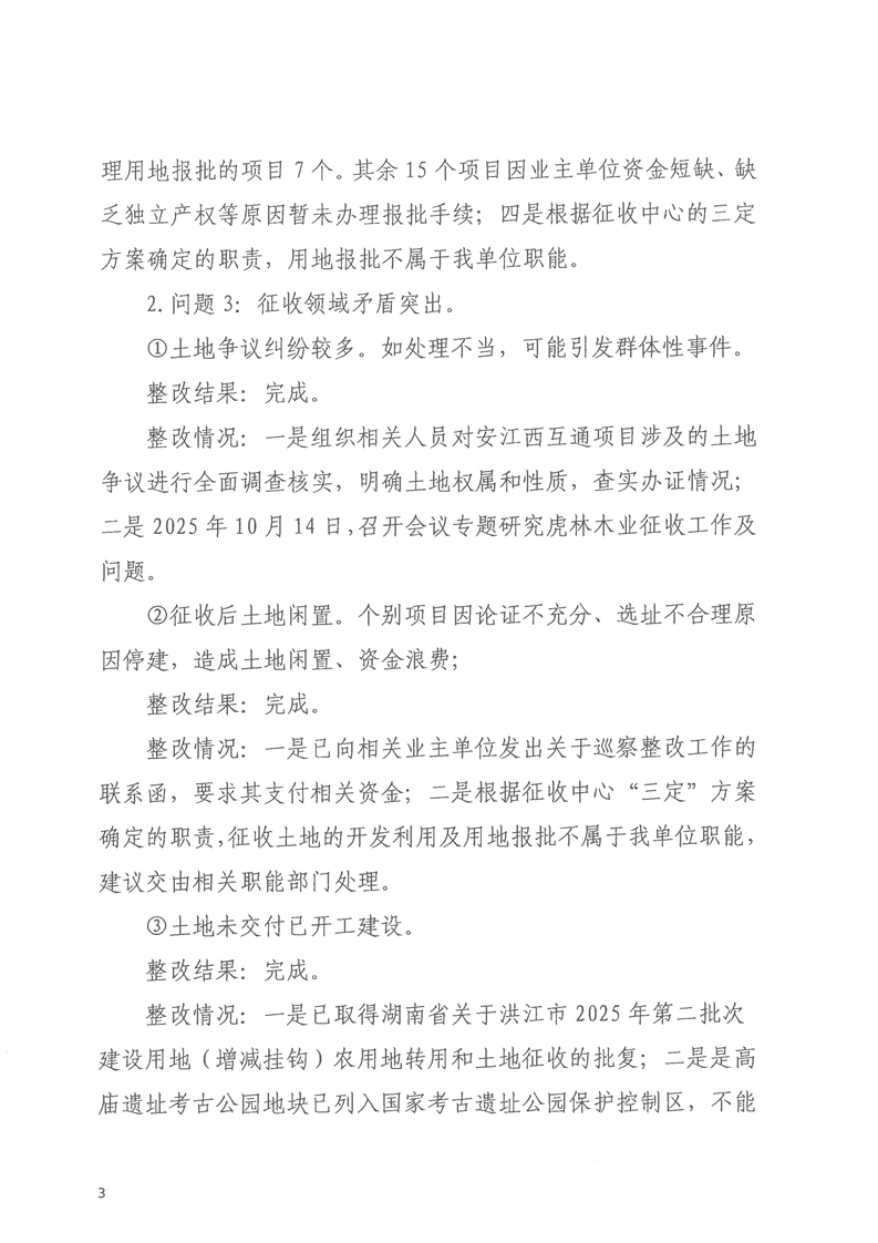 洪江市士地与房屋征收补偿安置事务中心关于巡察整改进展情况的通报