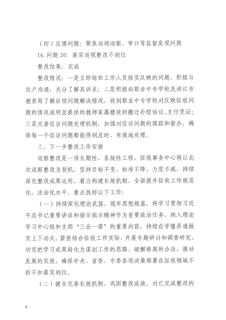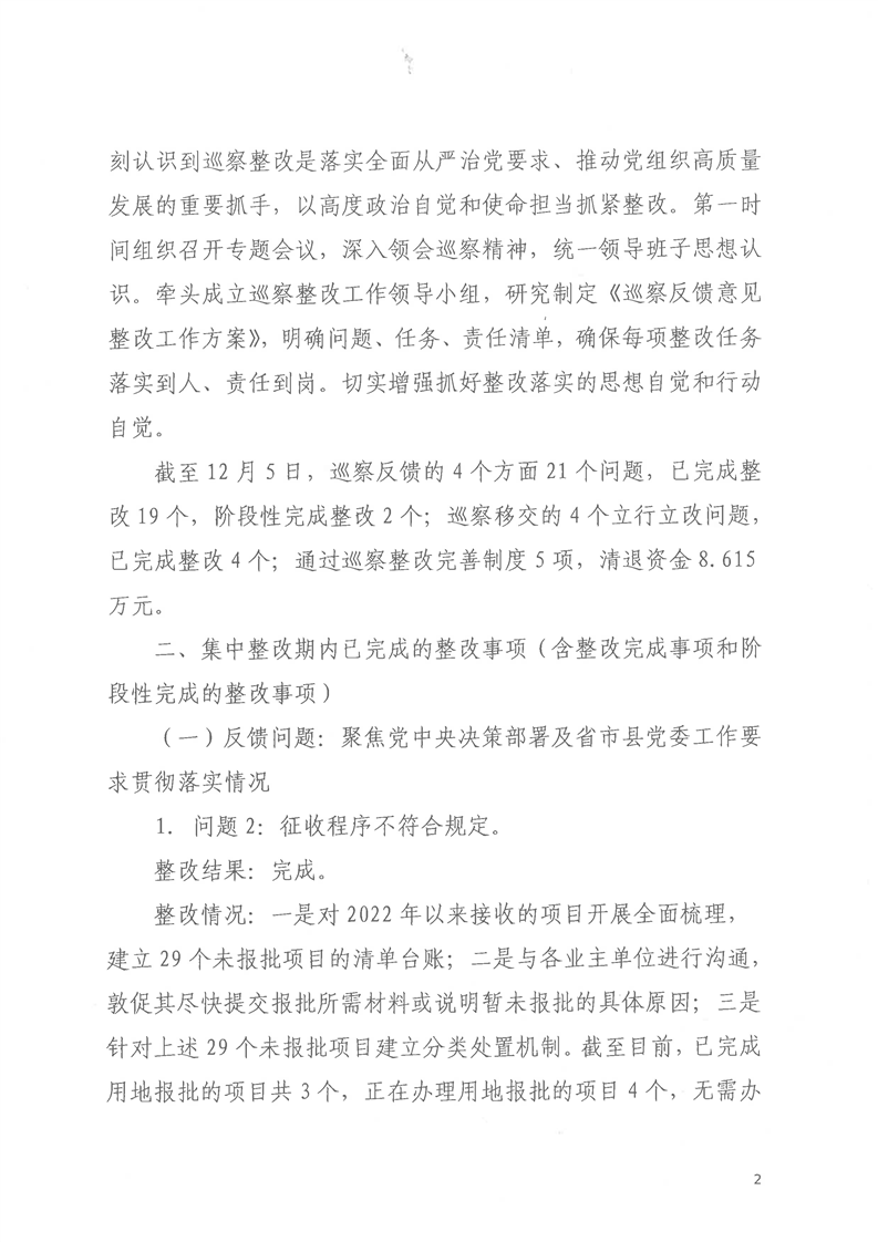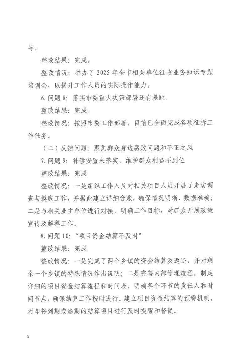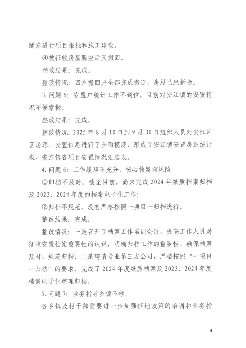 洪江市士地与房屋征收补偿安置事务中心关于巡察整改进展情况的通报