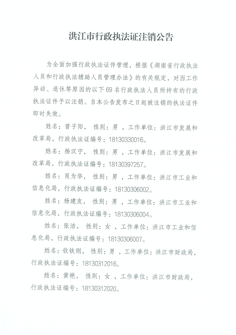 2026年第一批洪江市行政执法证注销公告