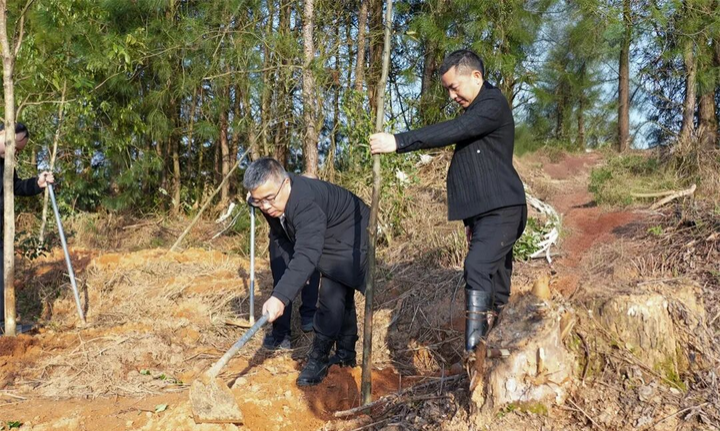 植树现场,郑小胡、向青松等市领导与志愿者、机关干部一起挥锹填土,合力栽下楠木、榉木、香樟、紫薇等苗木。植树间隙,郑小胡向有关负责同志详细了解苗木品种和林木保护等情况,叮嘱要加强苗木管护,提高成活率。他指出,要深入学习贯彻习近平生态文明思想和习近平总书记在湖南考察时的重要讲话和指示精神,牢固树立绿水青山就是金山银山的理念,坚持生态优先、绿色发展,绘就天蓝山绿水清的美丽洪江。