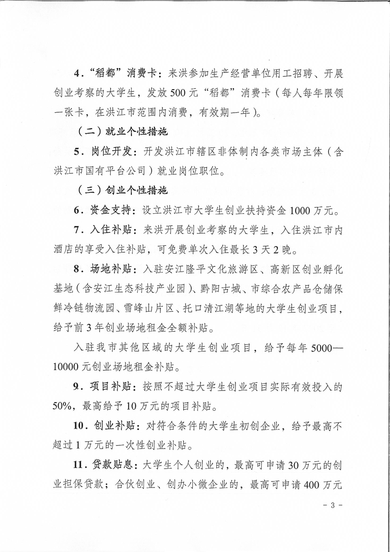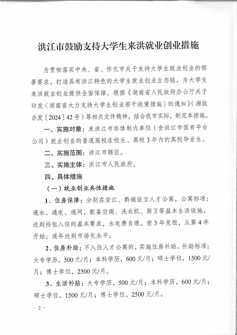 洪江市人民政府办公室关于印发《洪江市鼓励支持大学生来洪就业创业措施》的通知