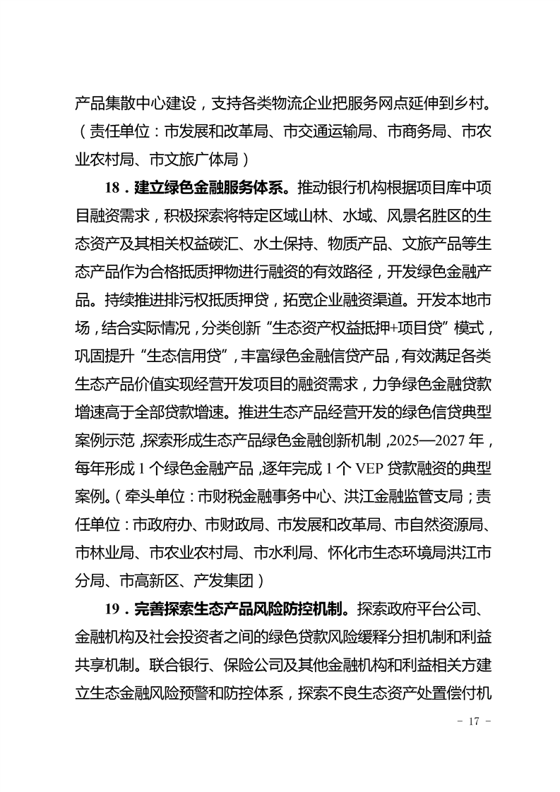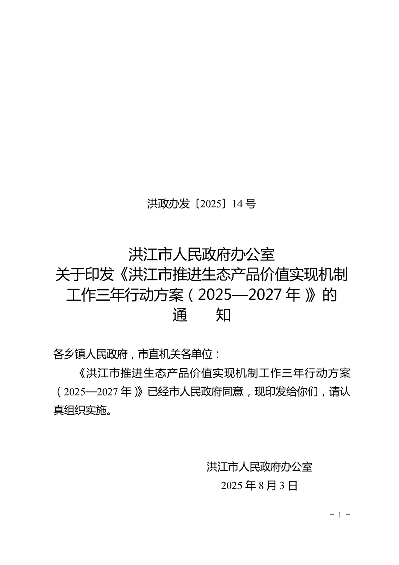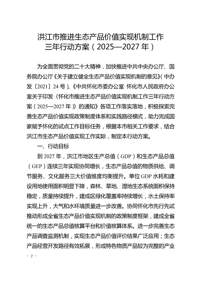 洪江市人民政府办公室关于印发《洪江市推进生态产品价值实现机制工作三年行动方案(2025—2027年)》的通知