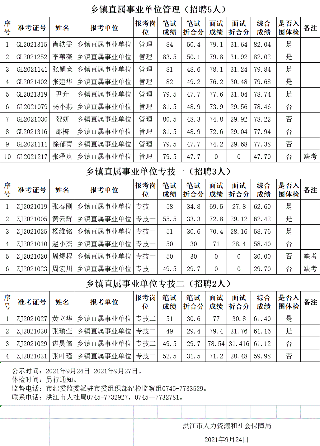 洪江市2021年公开招聘事业单位工作人员综合成绩公示