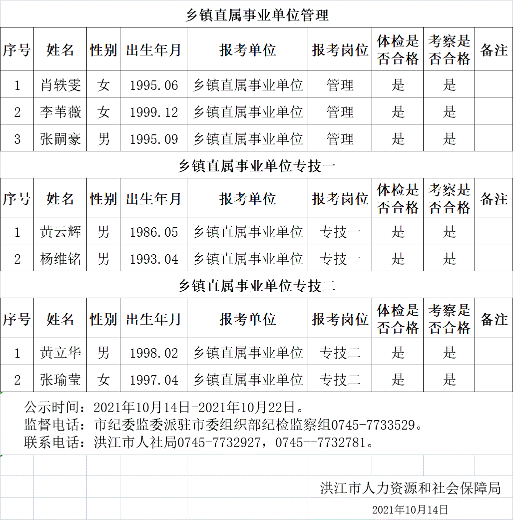 洪江市2021年公开招聘事业单位工作人员拟聘用人员公示