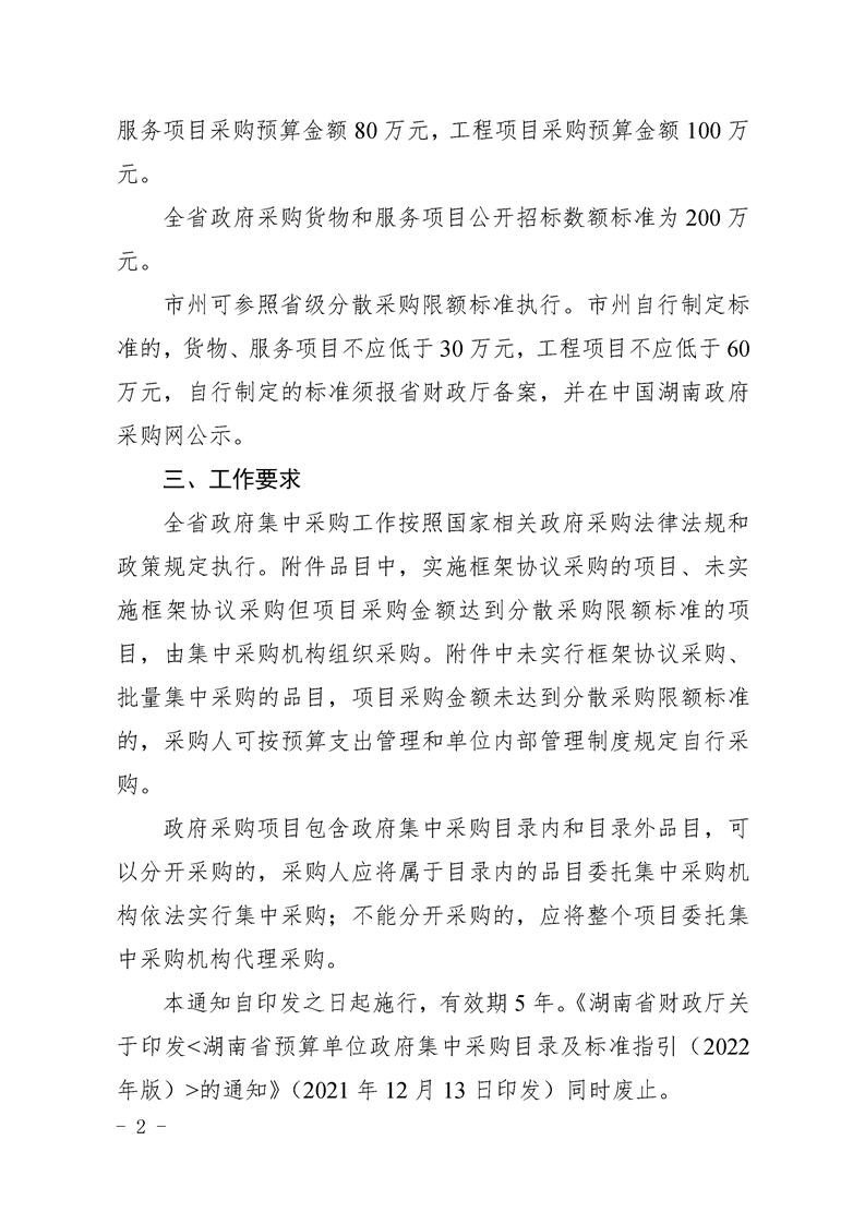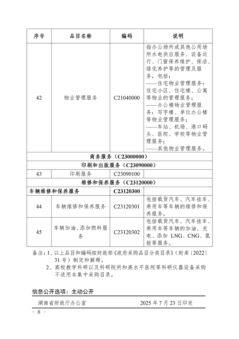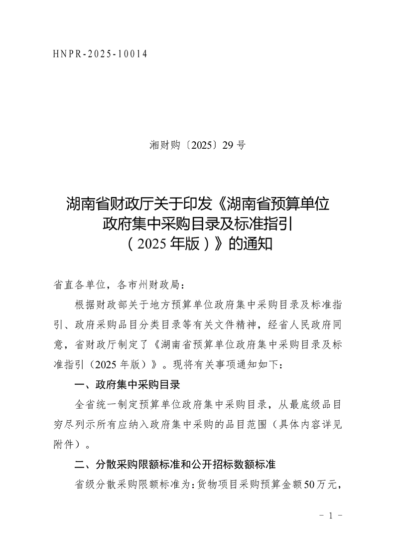 湖南省财政厅关于印发《湖南省预算单位政府集中采购目录及标准指引(2025年版)》的通知