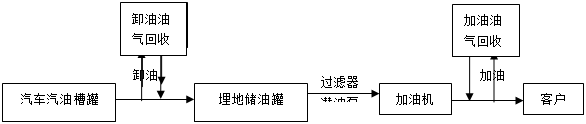 加油站日常经营的油品主要为汽油和柴油,现有加油机4台,油罐3个,其中30m3汽油罐2个,50m3柴油罐1个,皆为卧式SF双层地埋油罐,油罐总容积为110m3,折合为汽油的当量容积为85m3,按照《汽车加油加气站设计与施工规范》GB50156-2012(2014局部修订本)进行等级划分,加油站属三级站。