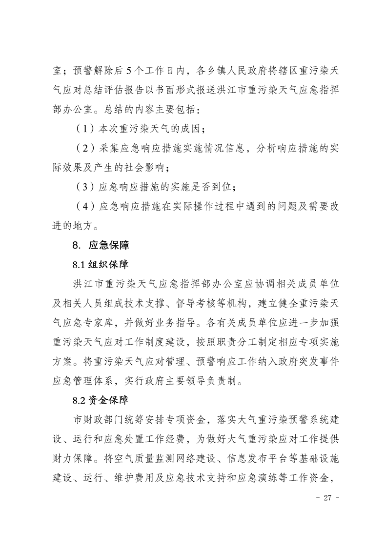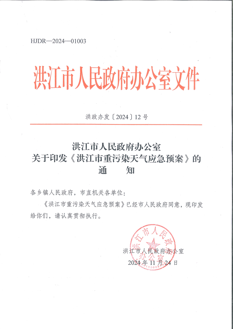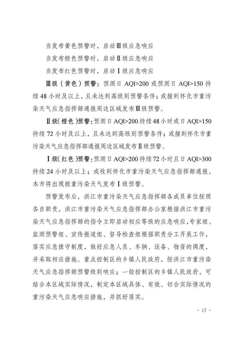 洪江市人民政府办公室关于印发《洪江市重污染天气应急预案》的通知