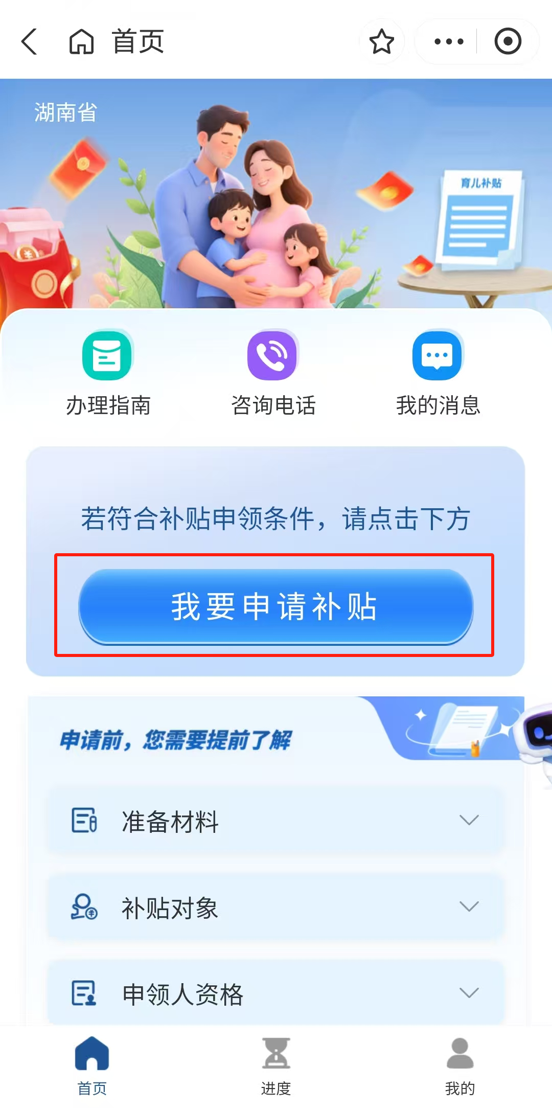 实名登录“湘易办”APP,在首页选择“育儿补贴”服务后点击“我要申请补贴”,阅读办理须知并确认,如实填写补贴对象信息、申领人信息、补贴收款信息,上传相关材料后确认提交,等待审核即可。