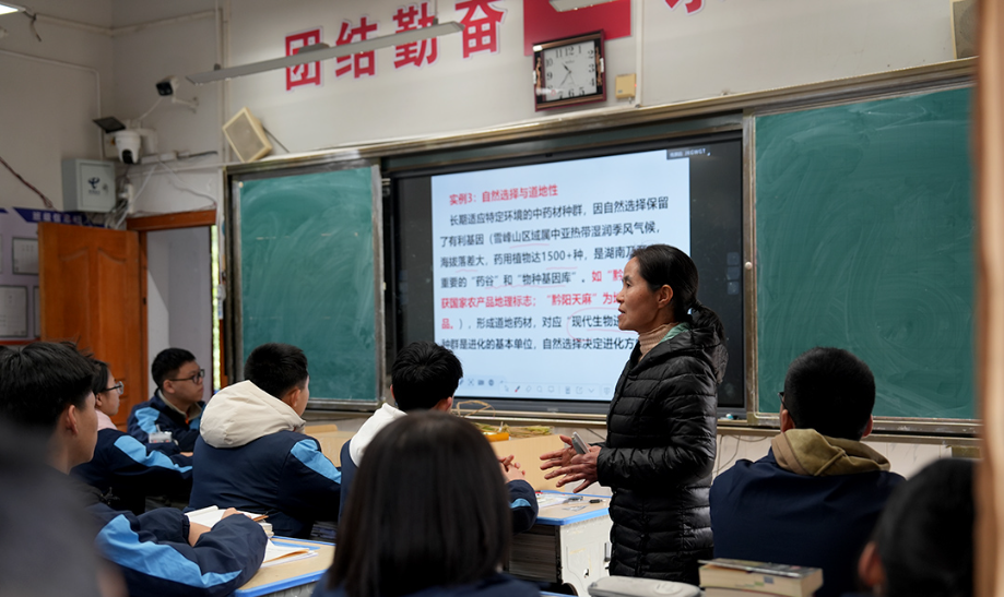向春花是黔阳一中的一名生物老师,课堂上,她带领同学们探索生物世界的奥秘,生动的讲解让每一位同学都听得格外专注。深耕生物教学领域三十余年,她坚持打破课堂与课本的边界,创新践行“从生活中来,到课堂中去”的教学理念,将抽象的生物知识与洪江市当地的水稻、中药材等特色产业深度融合。在她的课堂上,学生们不必困于桌椅之间,枯燥的理论知识变成了身边可触可感的生活实例,生物课变得更易懂、有趣、易学。