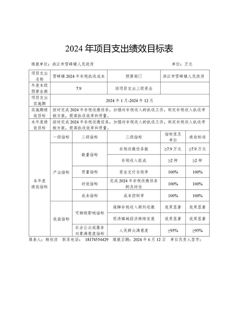 2024年度洪江市雪峰镇人民政府部门整体支出绩效目标