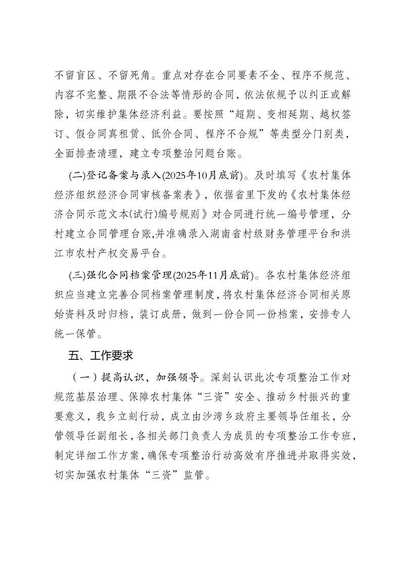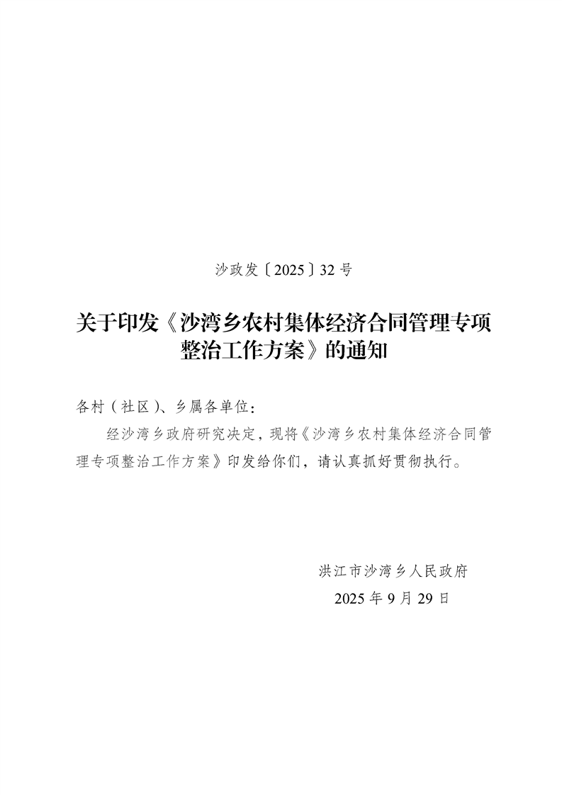 关于印发《沙湾乡农村集体经济合同管理专项整治工作方案》的通知