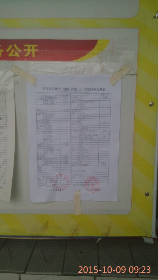 鸭池3季度财务公示照片