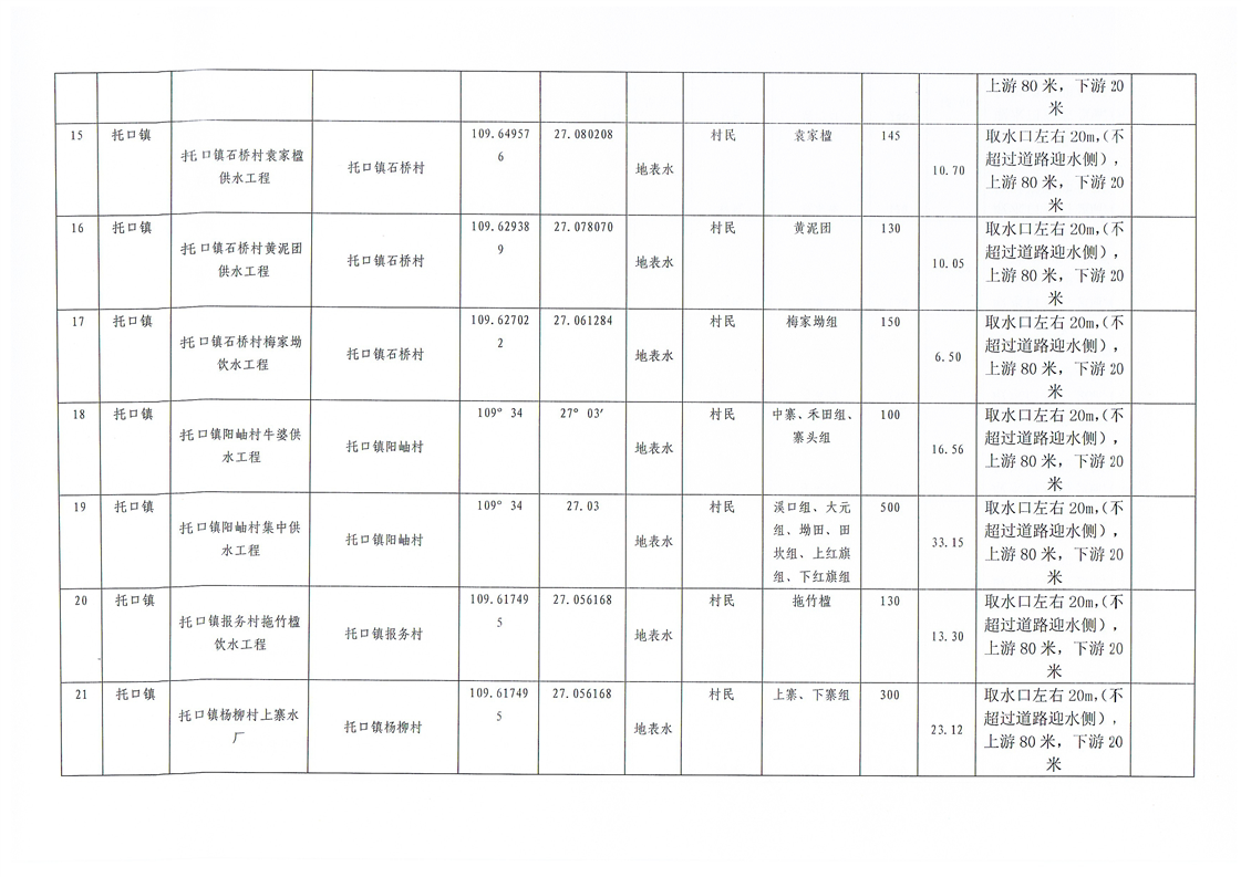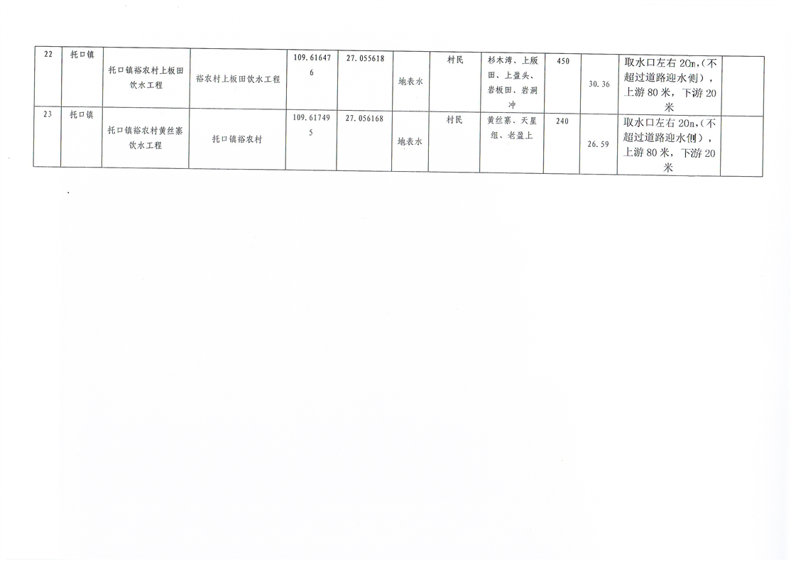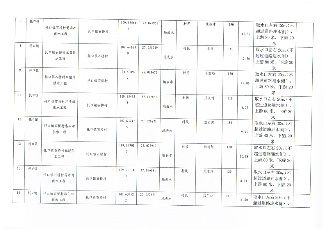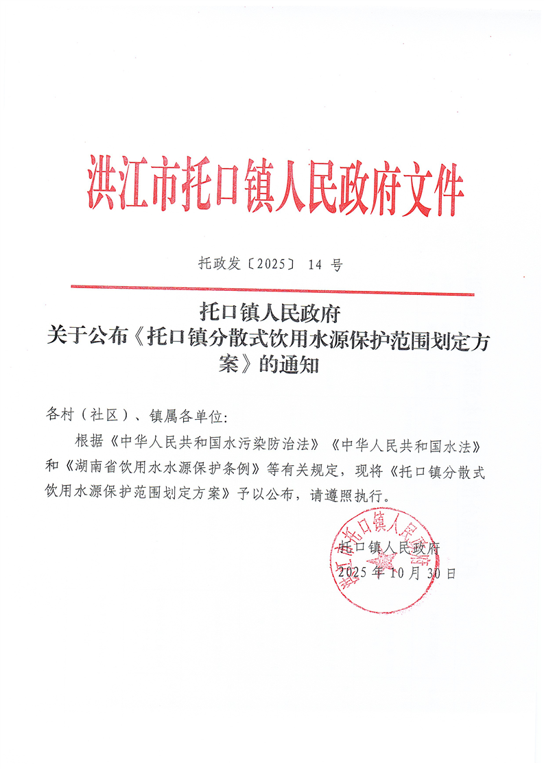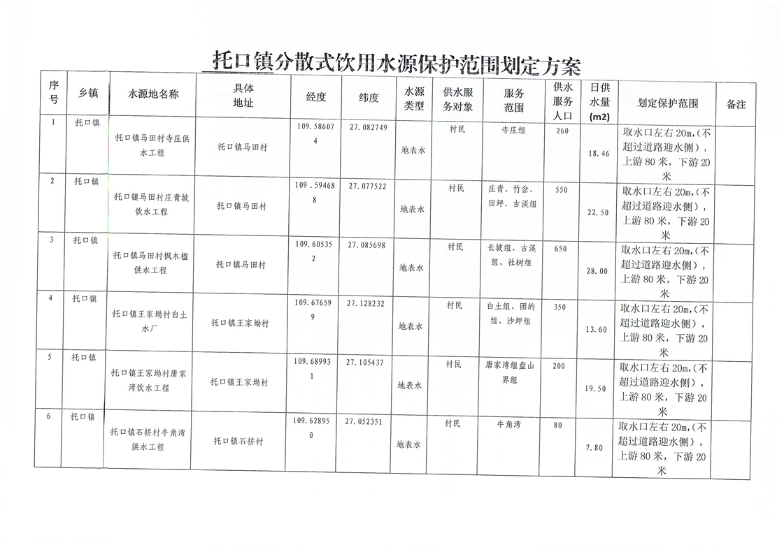 托口镇人民政府关于公布《托口镇分散式饮用水源保护范围划定方案》的通知