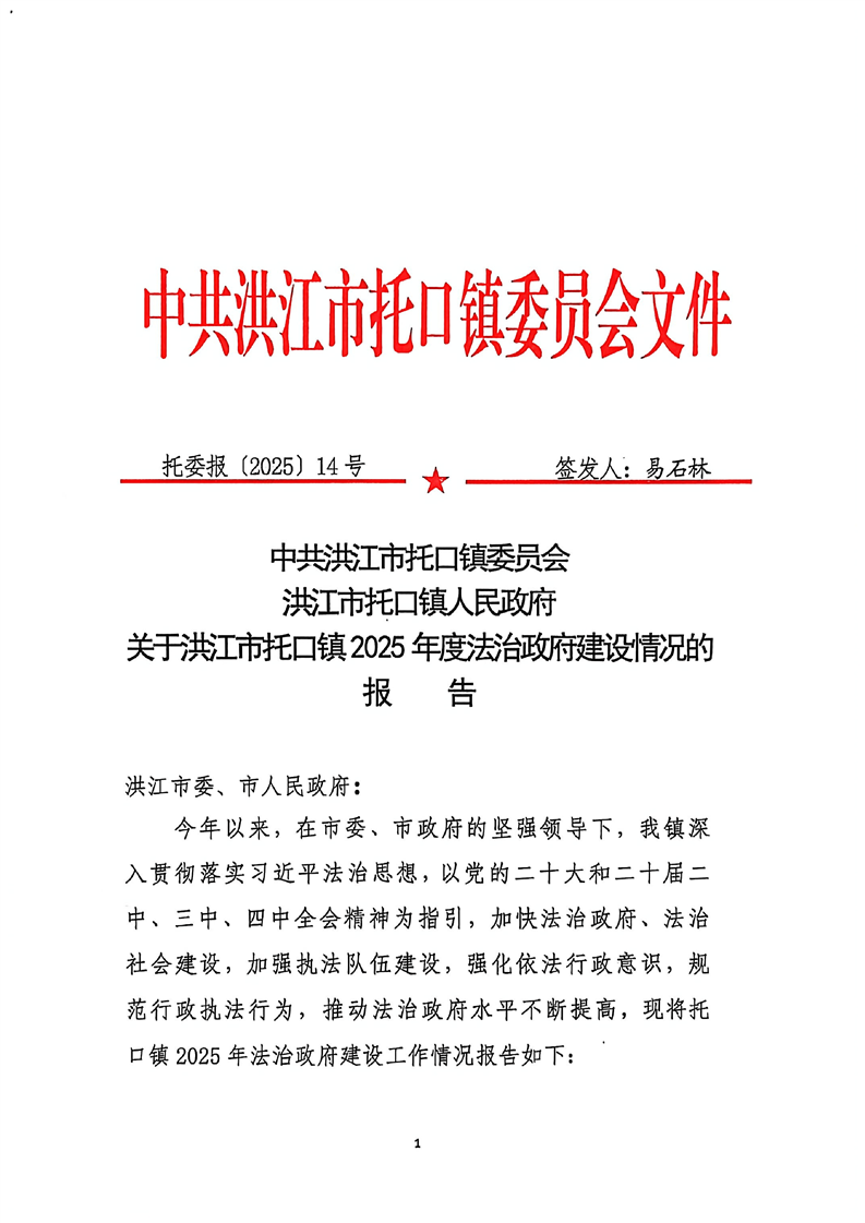 中共洪江市托口镇委员会洪江市托口镇人民政府关于洪江市托口镇2025年度法治政府建设情况的报告