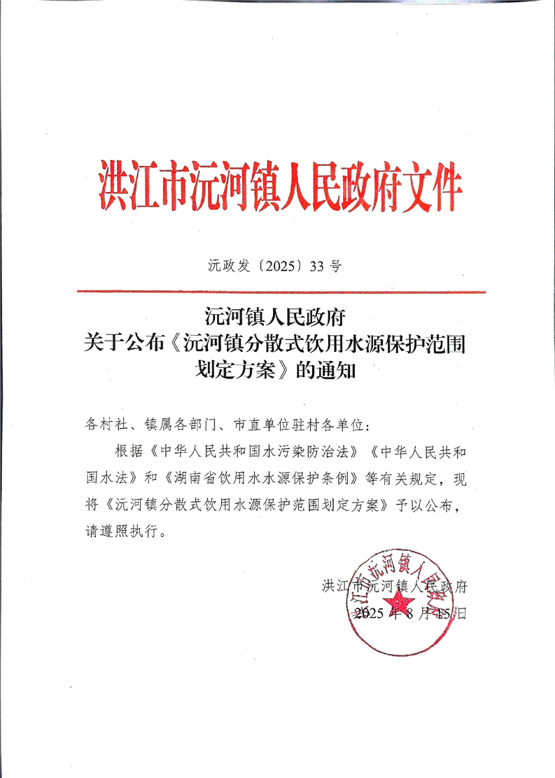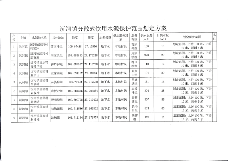 沅河镇人民政府关于公布《沅河镇分散式饮用水源保护范围划定方案》的通知