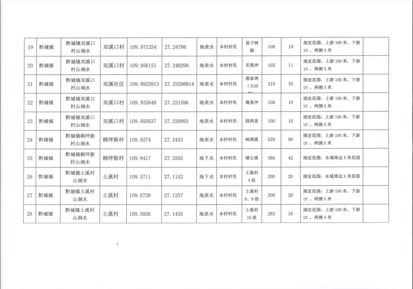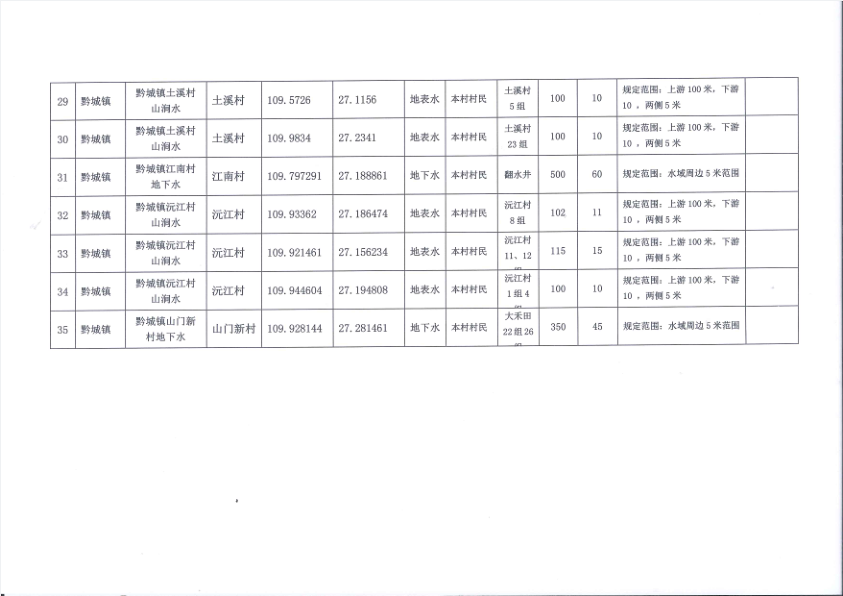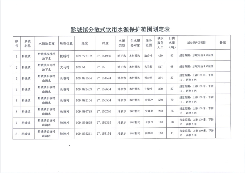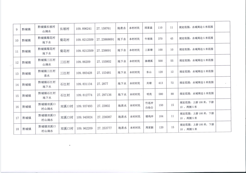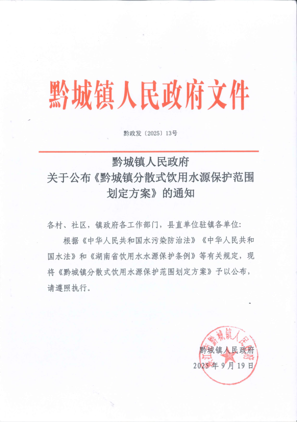 关于公布《黔城镇分散式饮用水源保护范围划定方案》的通知