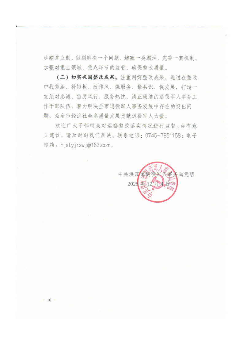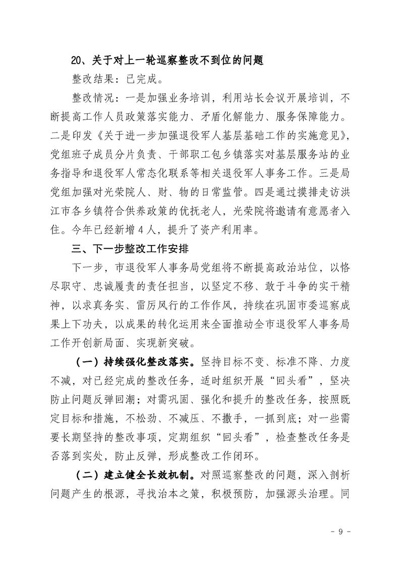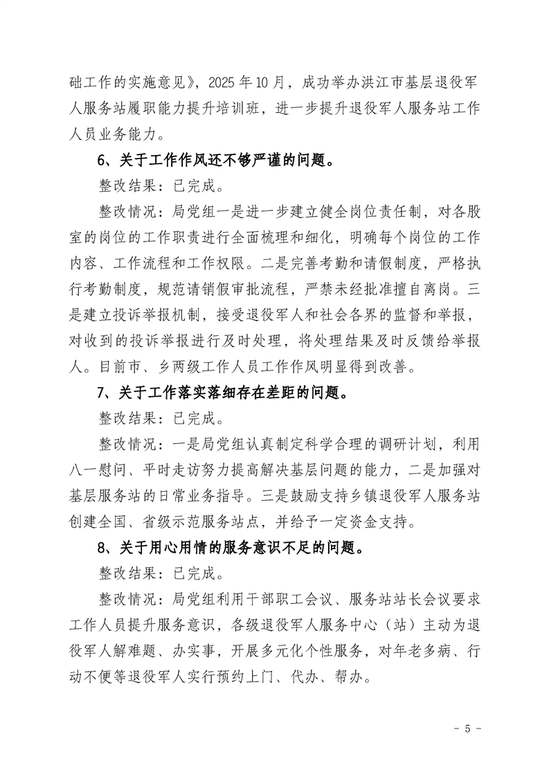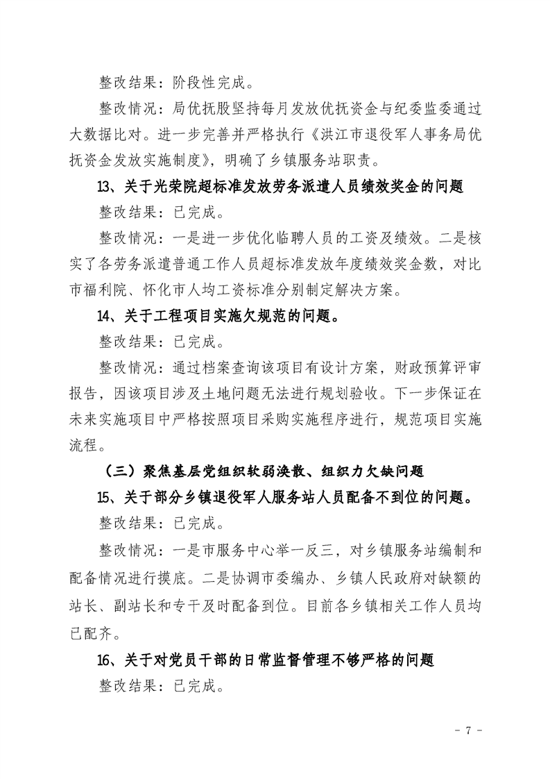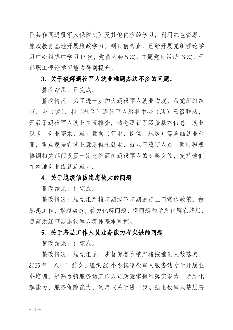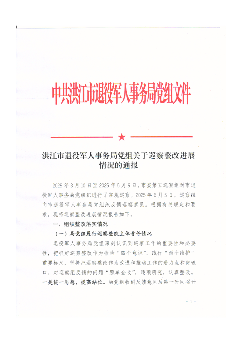 洪江市退役军人事务局党组关于巡察整改进展情况的通报