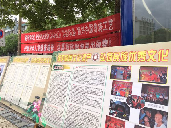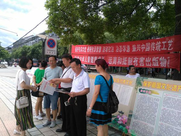 今年6月10日是我国第十二个“文化遗产日”,同时也是《国务院关于加强文化遗产保护工作的通知》发布十二周年。6月9-10日,洪江市文物所、洪江市非物质文化遗产保护中心、洪江市“扫黄打非”办公室联合组织工作人员,以“一带一路新舞台,文化遗产活起来”为主题,分别在安江镇稻都广场、黔城镇飞龙广场开展了“文化遗产日”系列宣传活动。活动共展出图文展板12块,悬挂横幅5条,发放宣传资料二百余份,着力宣传了近年来我市在文物保护、非物质文化遗产传承、“扫黄打非”和护助少年儿童健康成长等方面的工作成就。活动现场气氛活跃,观看群众络绎不绝,有力提升了全社会的文化遗产保护意识。