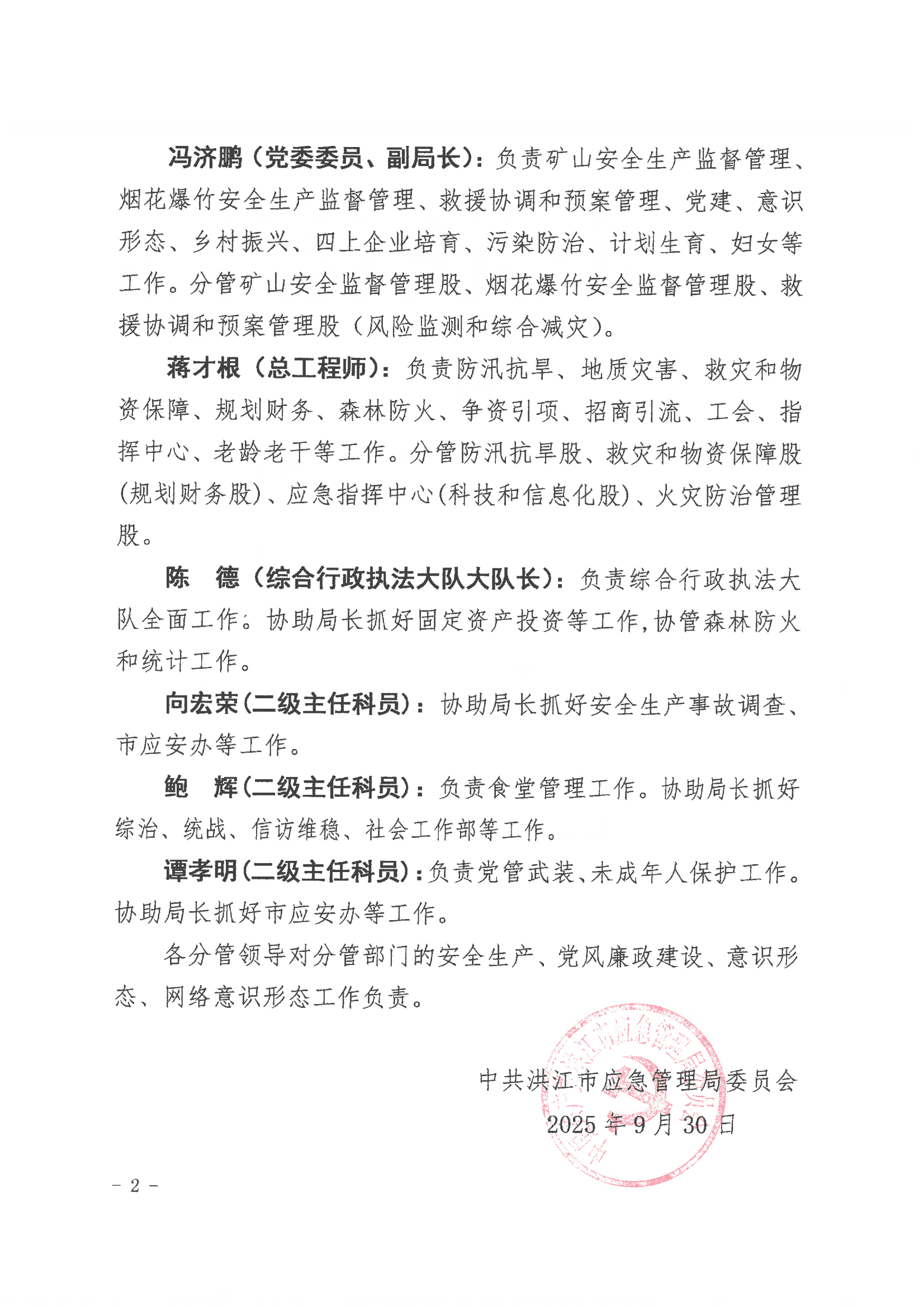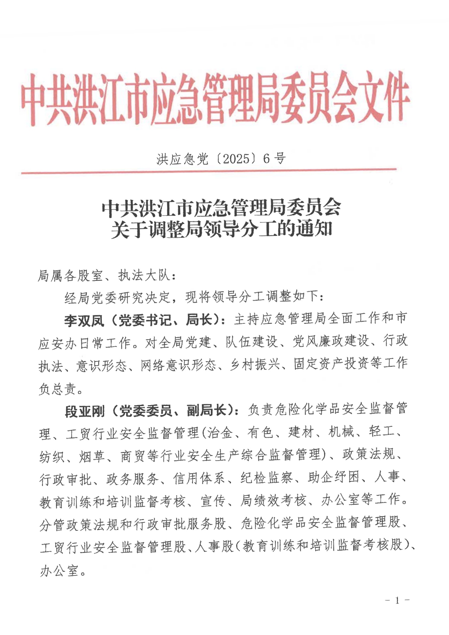中共洪江市应急管理局委员会关于调整局领导分工的通知 洪应急党〔2025〕6号