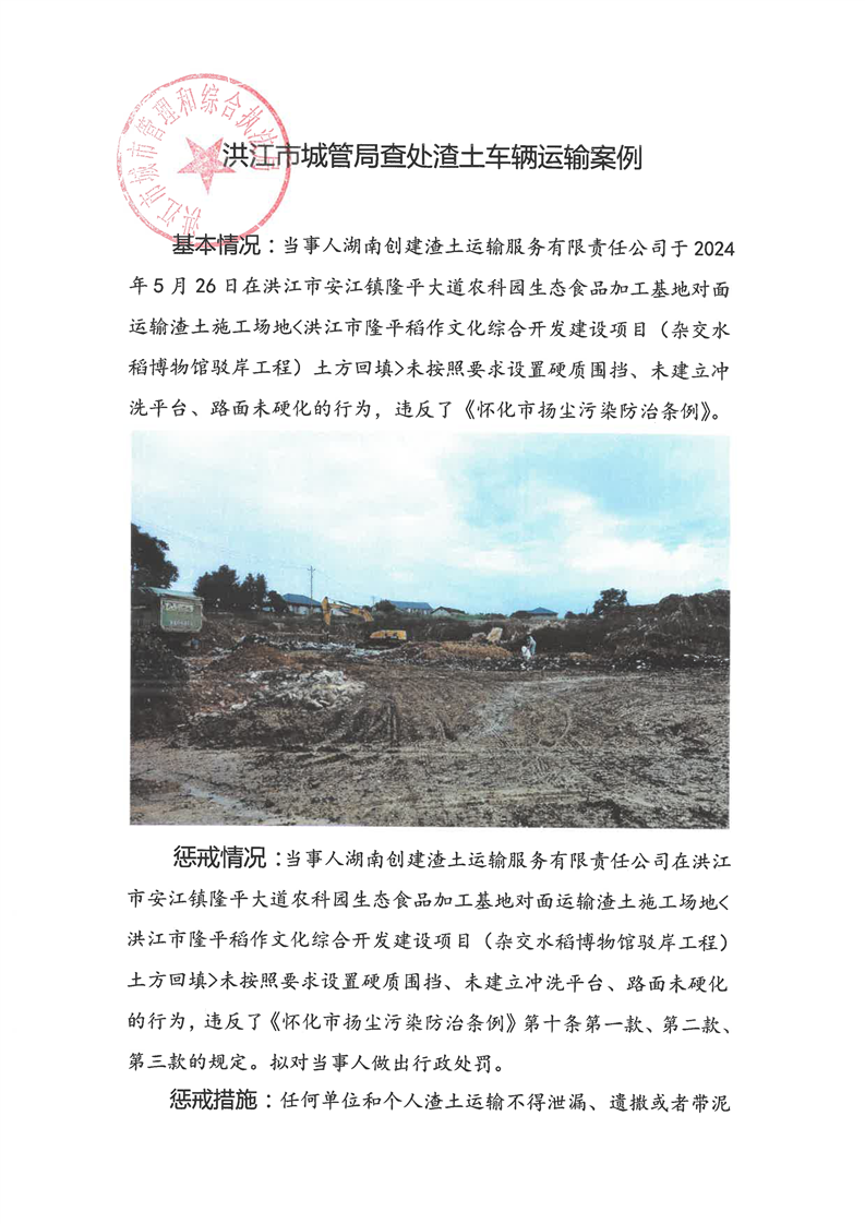 洪江市城市管理和综合执法局查处渣土车辆运输案例
