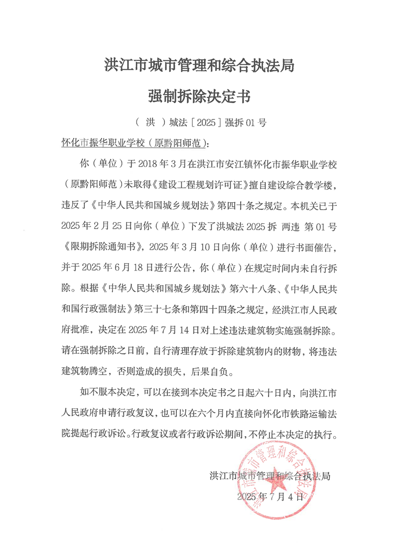 ((洪)城法〔2025〕强拆01号公示