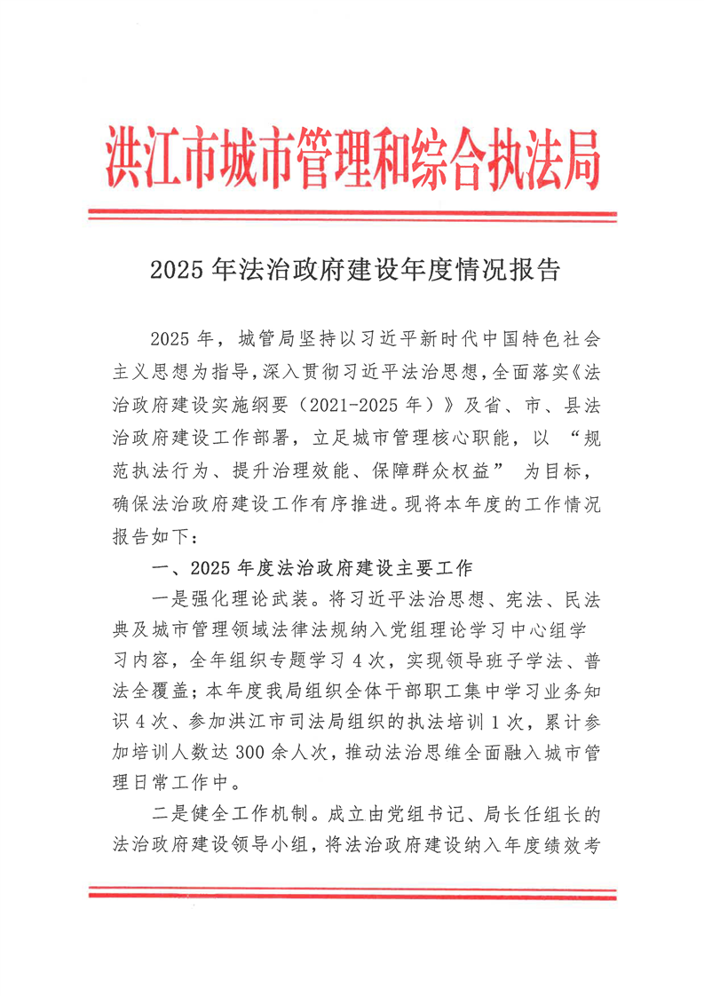 洪江市城市管理和综合执法局2025年法治政府建设年度情况报告