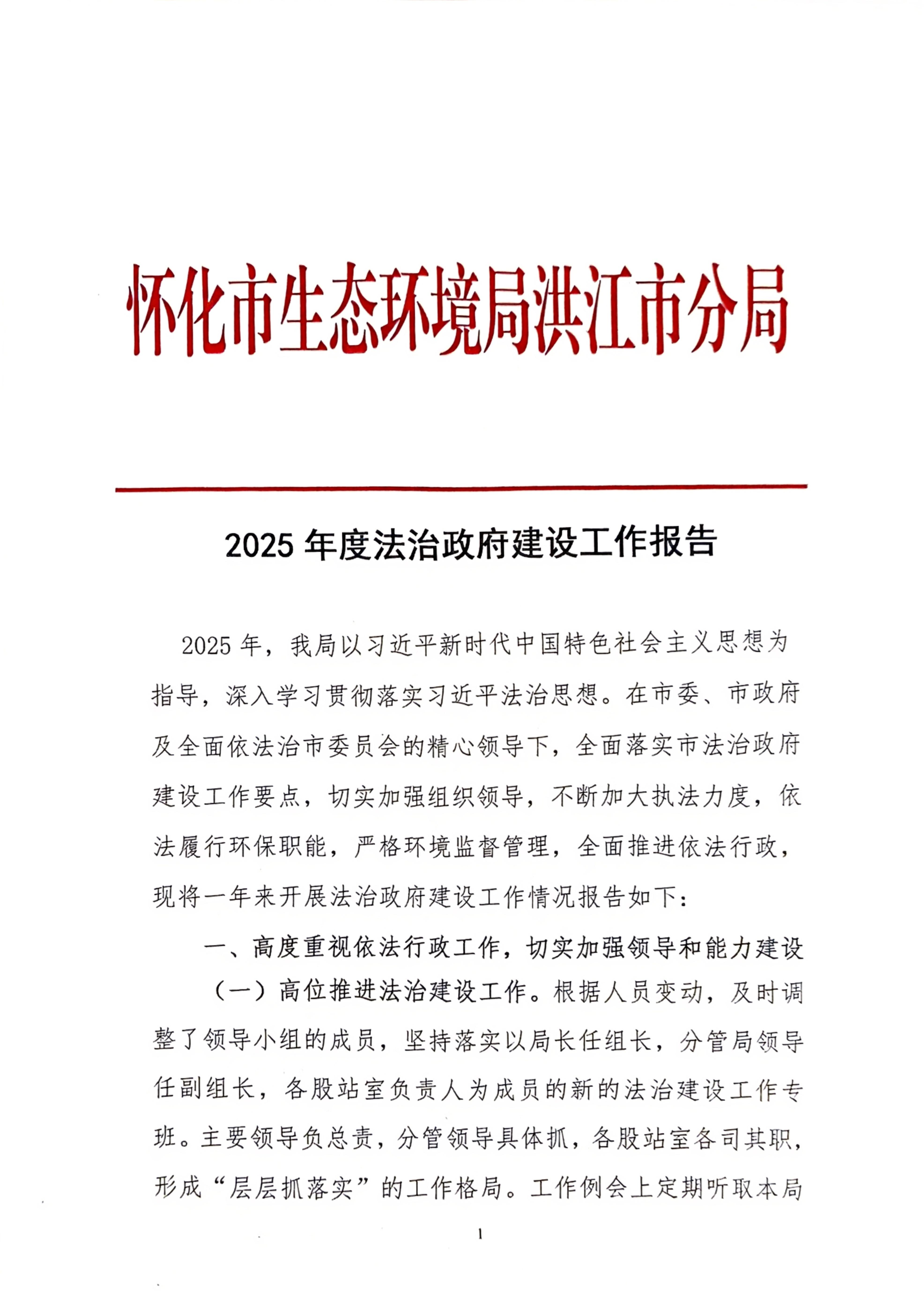 怀化市生态环境局洪江市分局2025年法治政府建设工作报告
