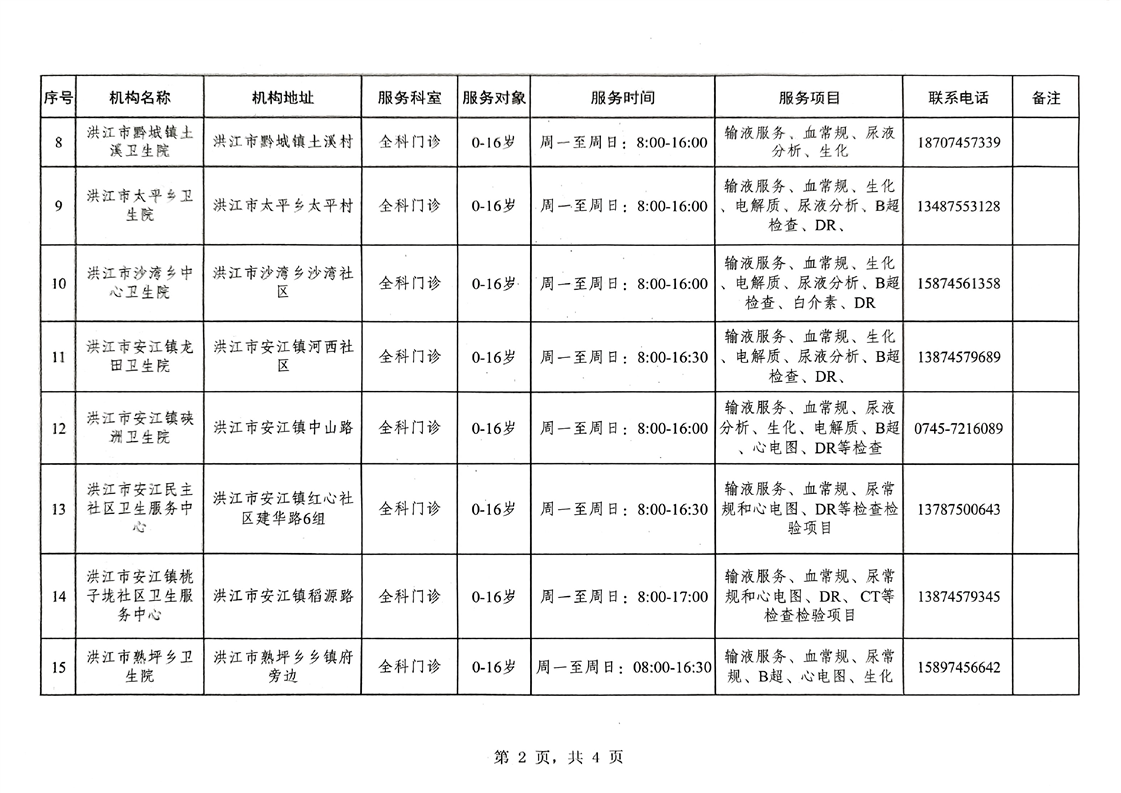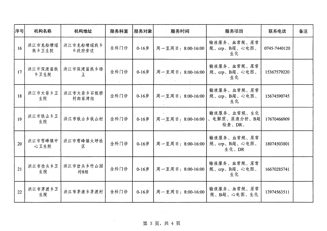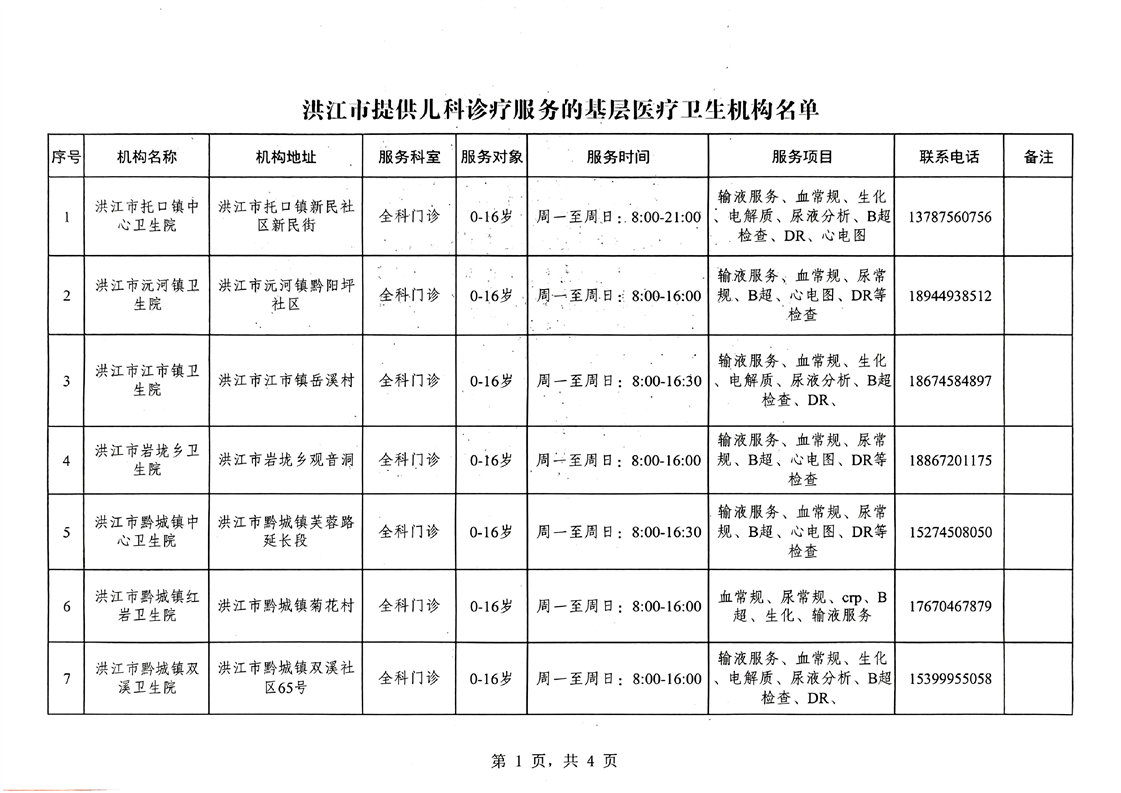 洪江市提供儿科诊疗服务的基层医疗卫生机构名单