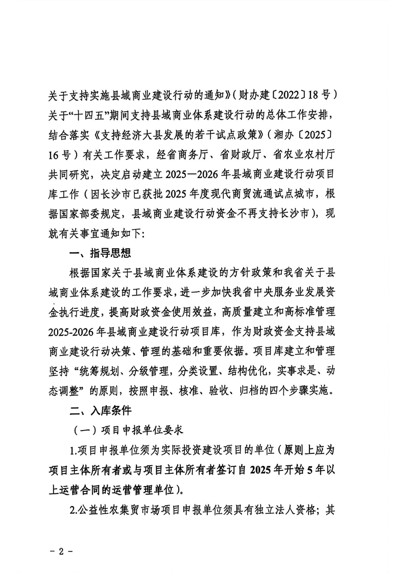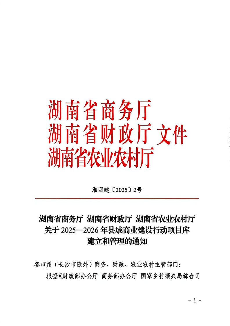 湖南省商务厅湖南省财政厅湖南省农业农村厅关于2025-2026年县域商业建设行动项目库建立和管理的通知
