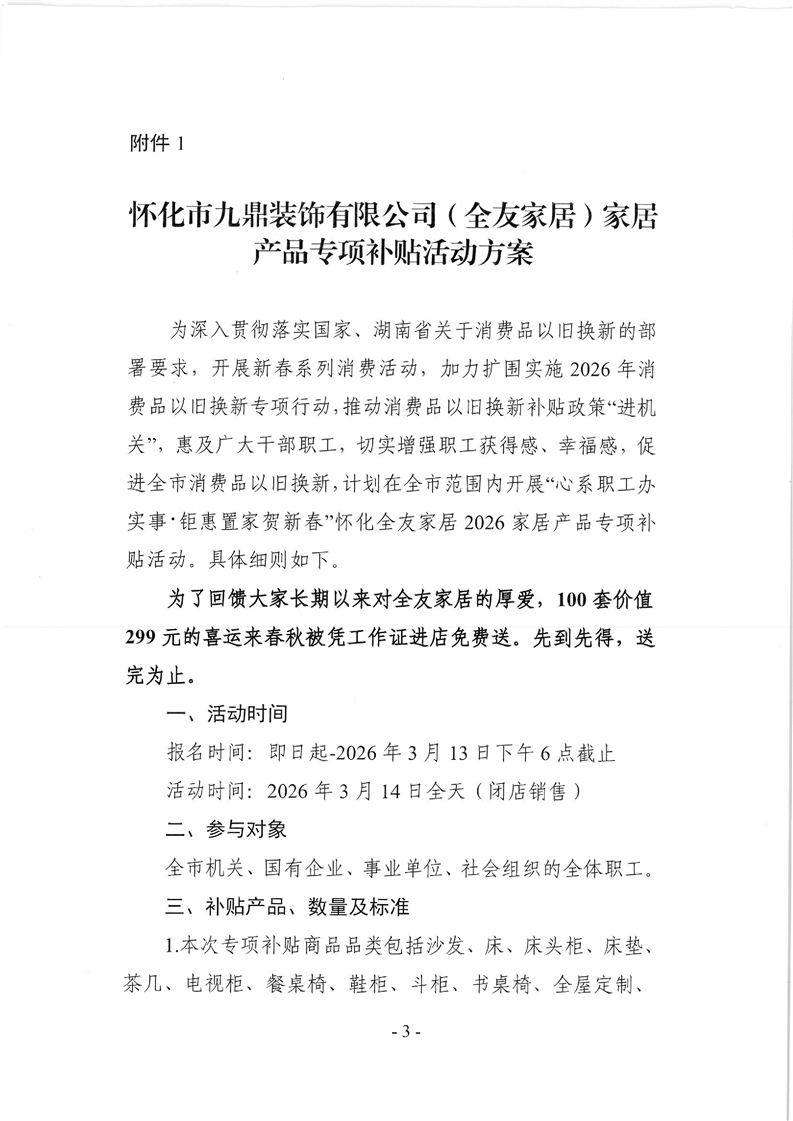 附件1怀化市九鼎装饰有限公司(全友家居)家居产品专项补贴活动方案.docx