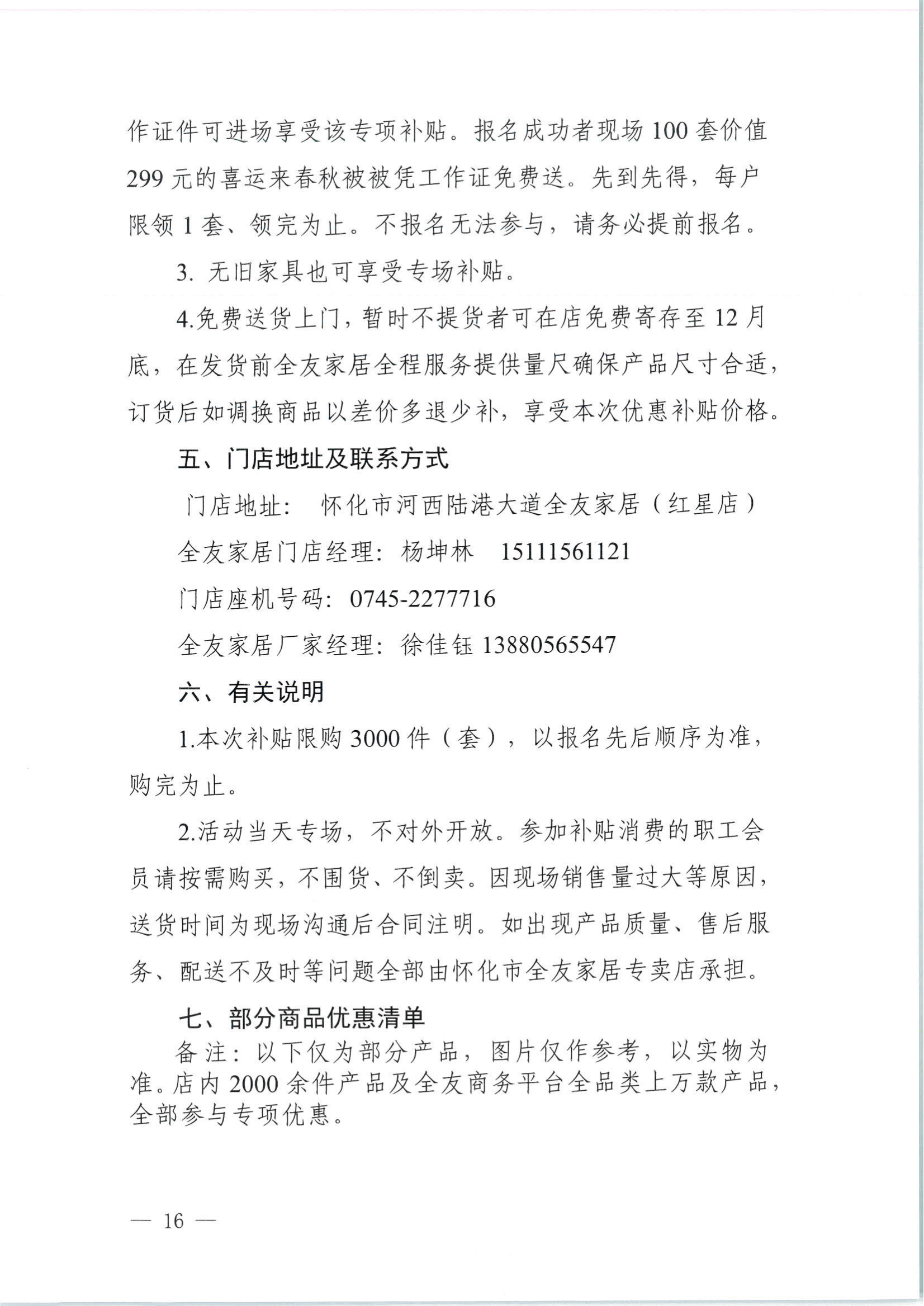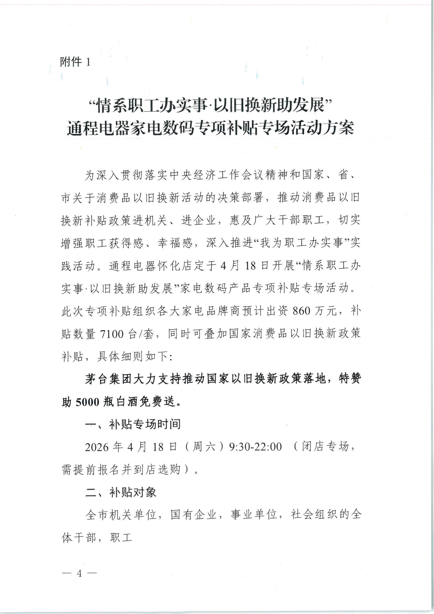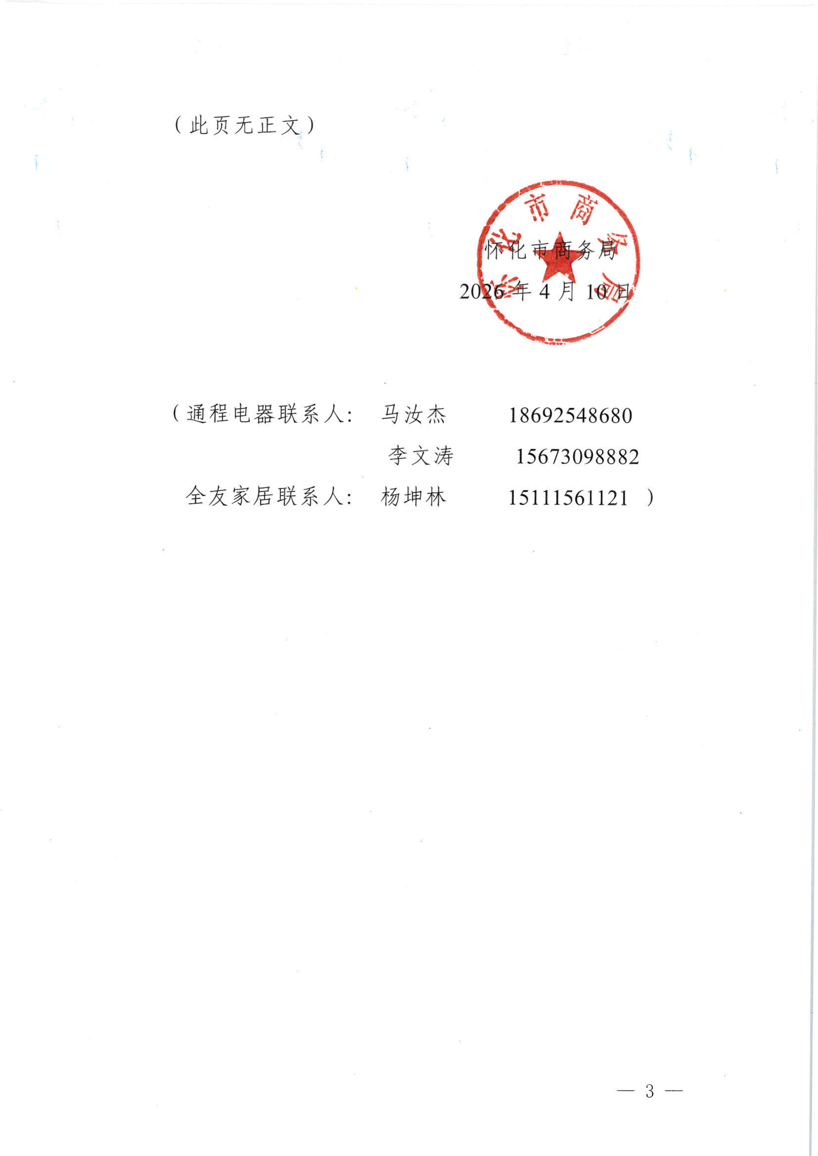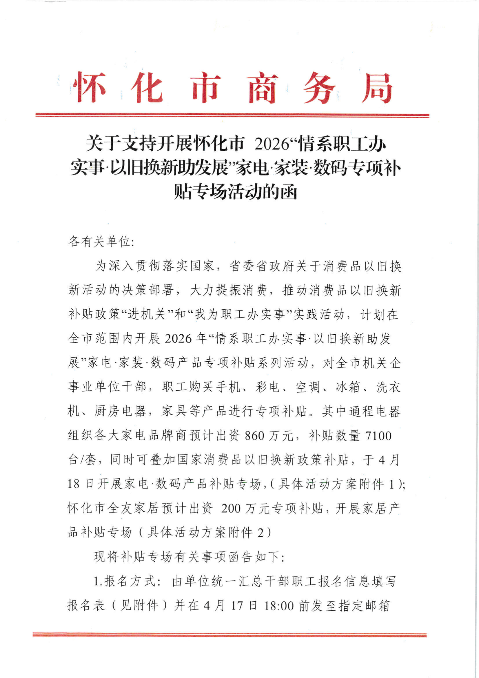 怀化市商务局关于支持开展怀化市 2026“情系职工办实事·以旧换新助发展”家电·家装·数码专项补贴专场活动的函