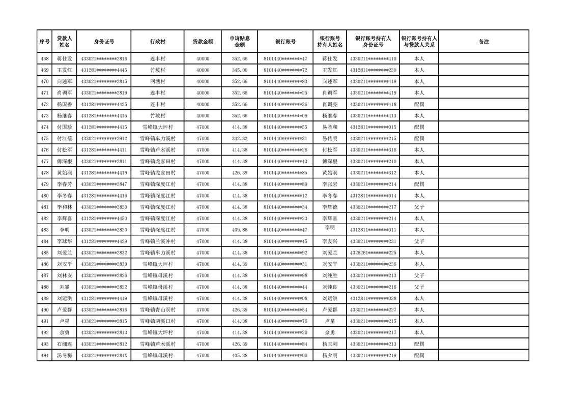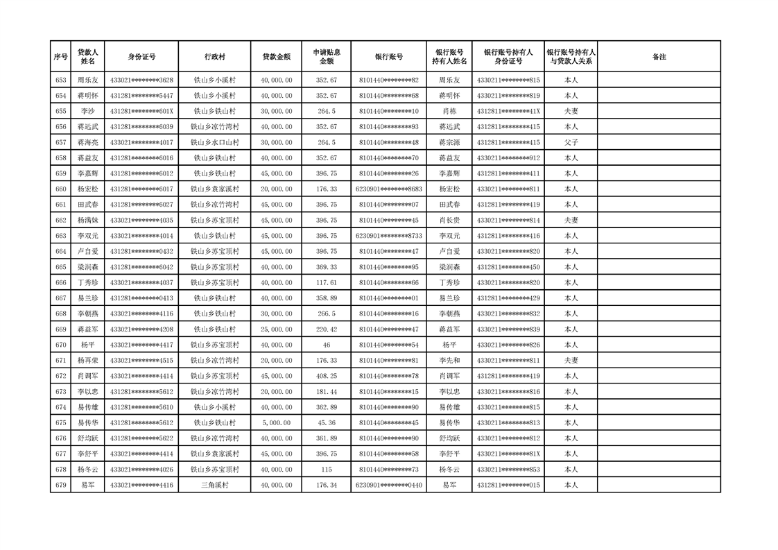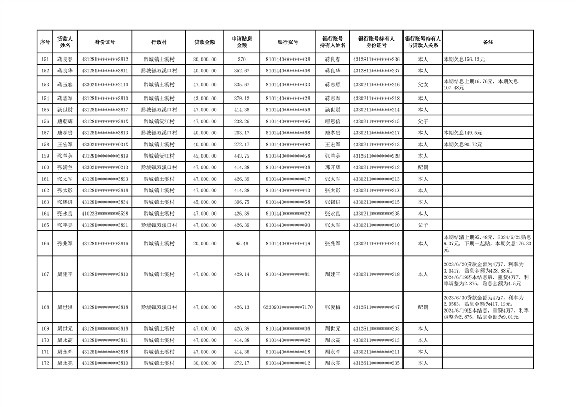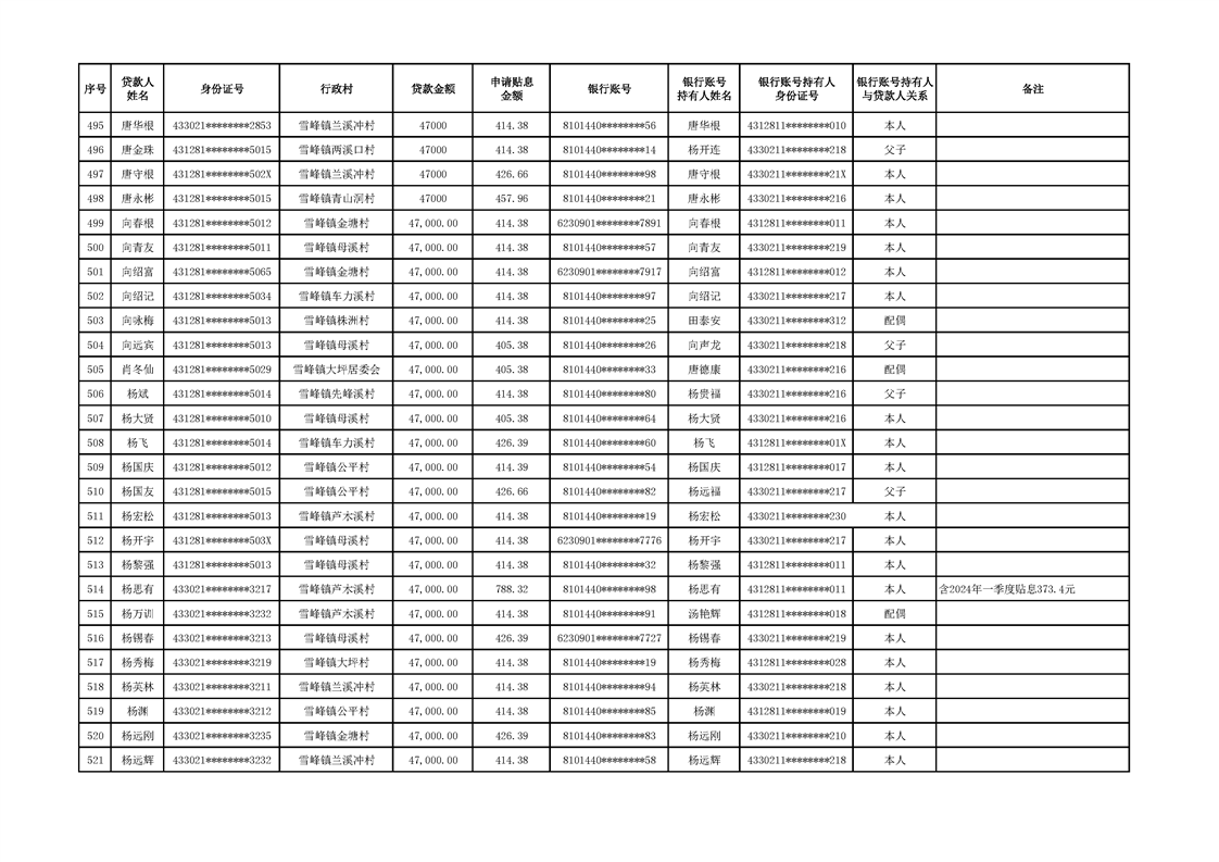 洪江市2024年2季度小额信贷贴息资金公示表