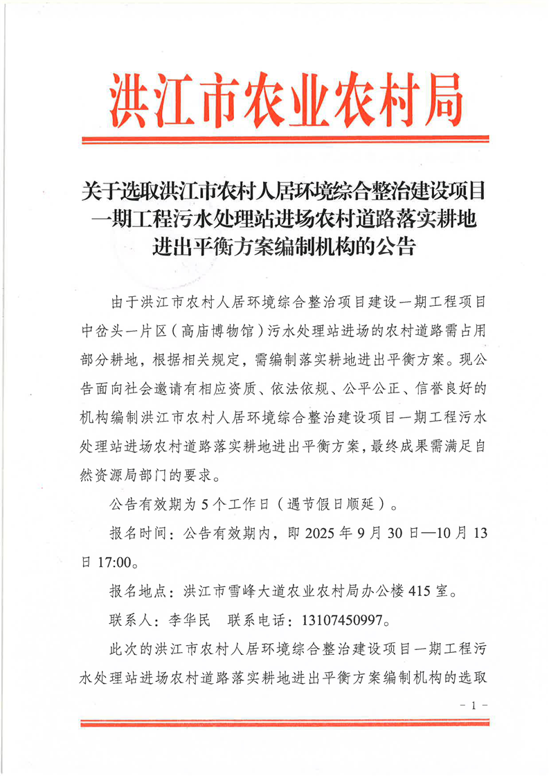 关于洪江市农村人居环境综合整治建设项目一期保障公路、公路附属设施质量和安全的技术评价报告编制机构的公告