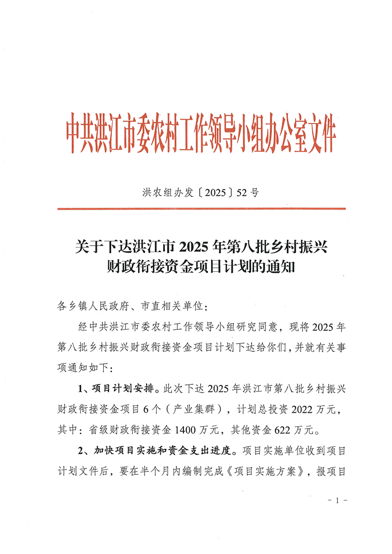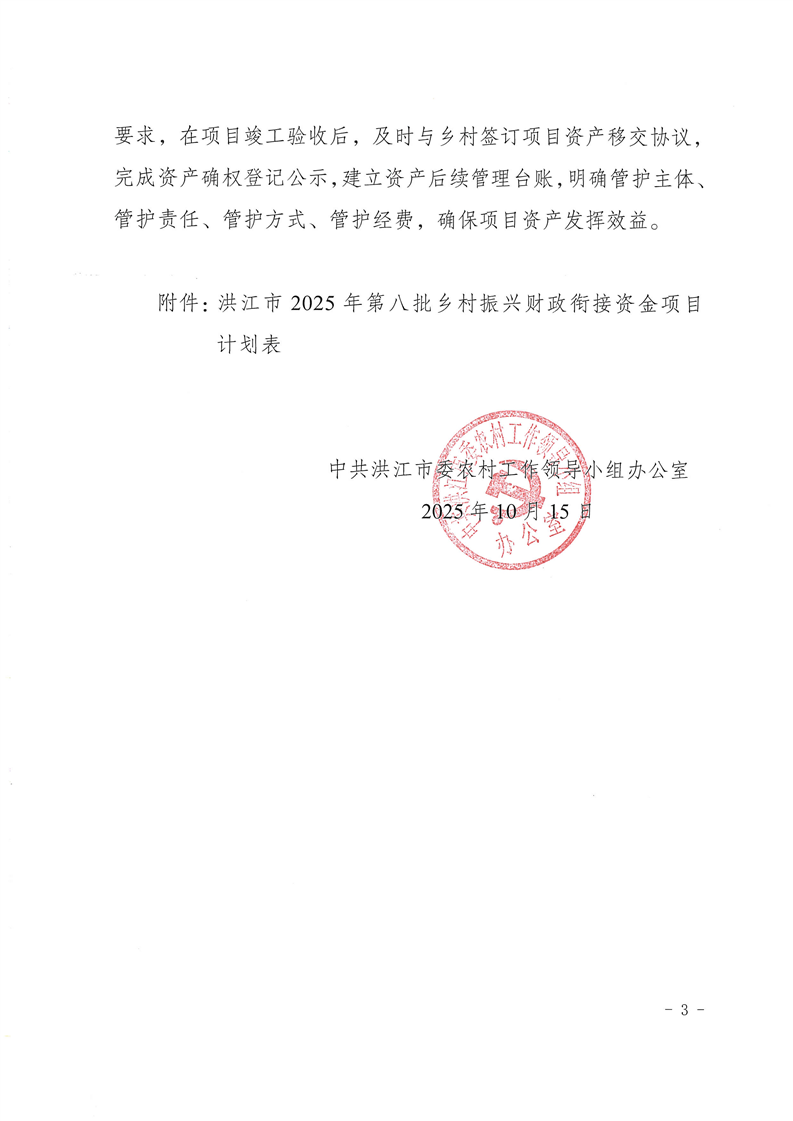 关于下达洪江市2025年第八批乡村振兴财政衔接资金项目计划的通知